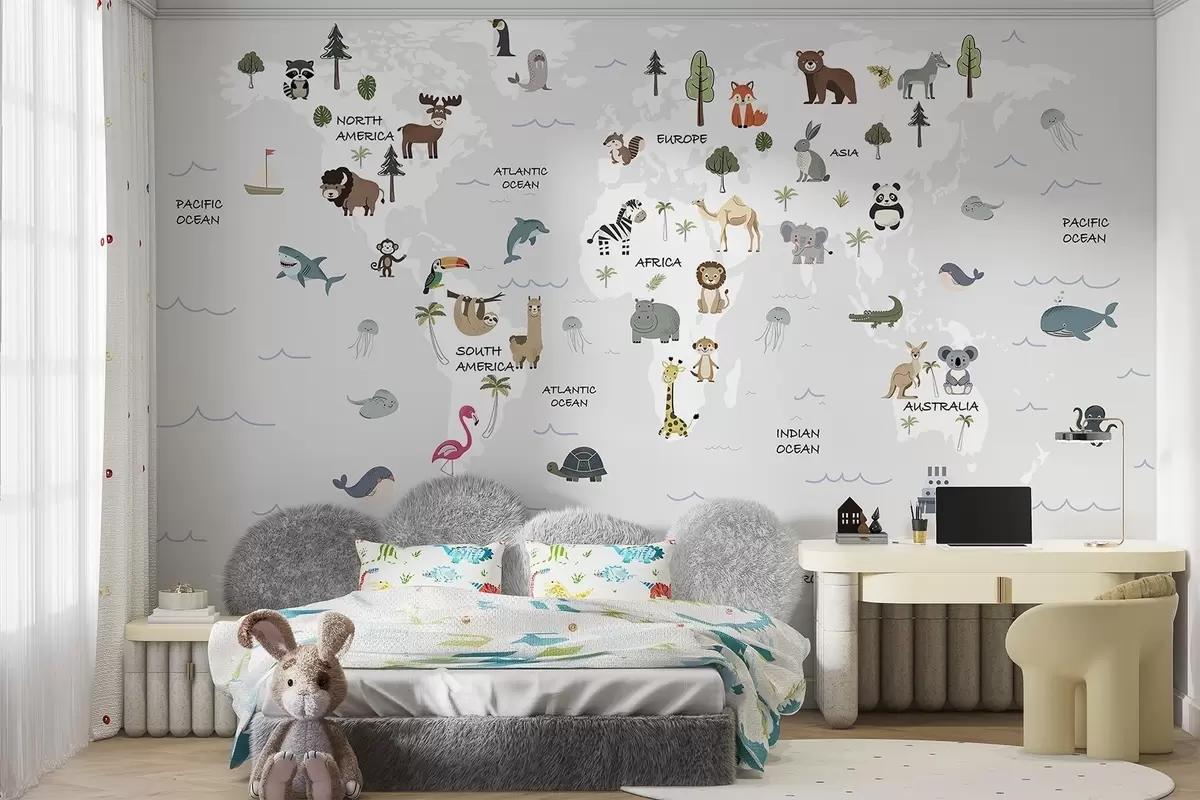 Fototapeta Mapa świata ze zwierzętami Nr w04663