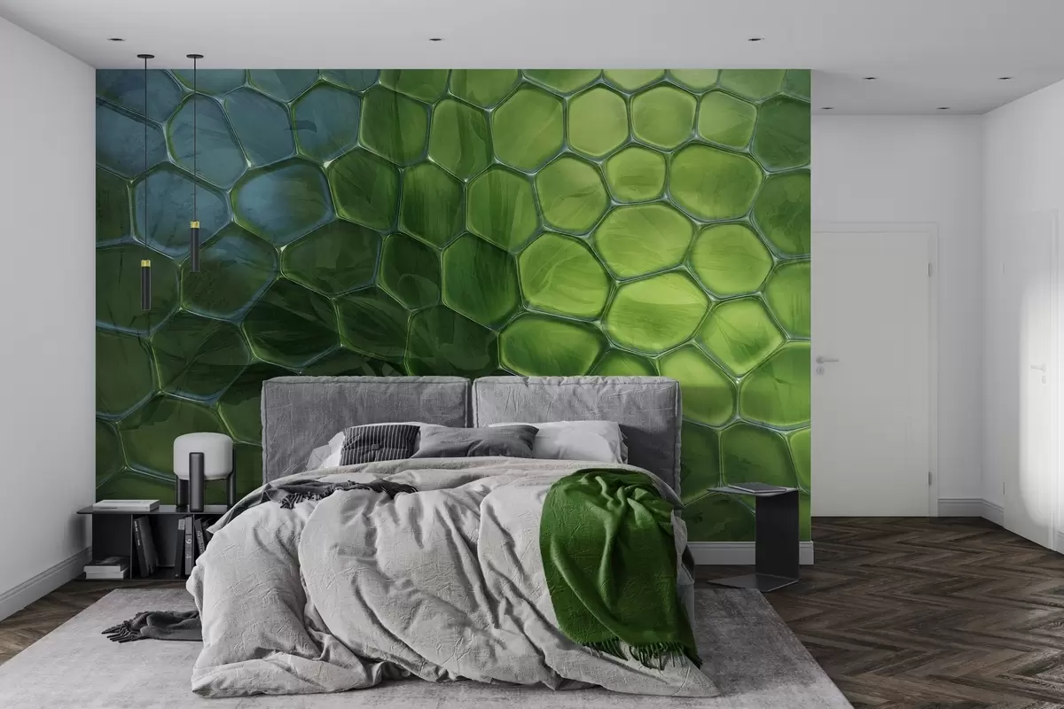 Fototapeta Liście przez szklane plastry miodu Nr w04667