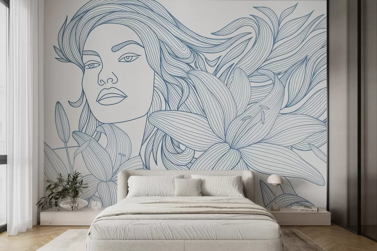 Fototapeta Portret dziewczyny w odcieniach błękitu wśród kwiatów lilii Nr w04689v2