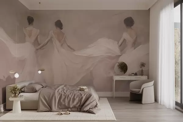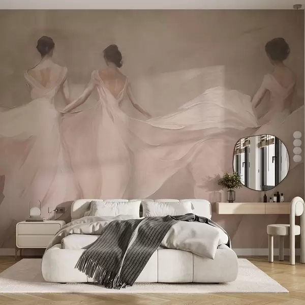 Fototapeta Trzy kobiety w różowych sukienkach, zwiewny materiał, delikatność Nr w04709