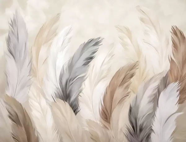 Fototapeta Miękkie, puszyste pióra w ciepłej, neutralnej palecie kolorów Nr w04736