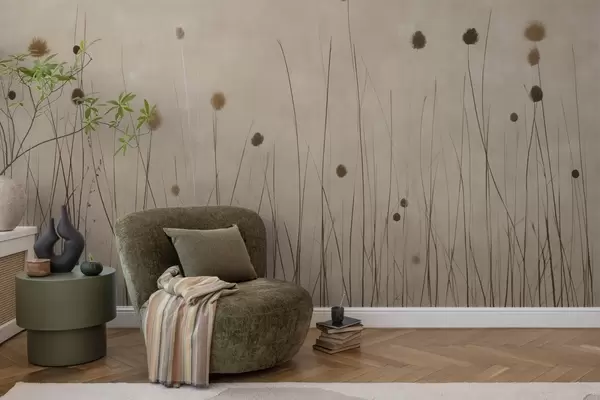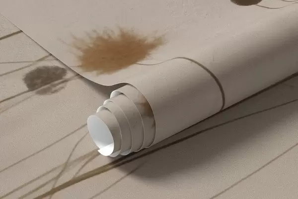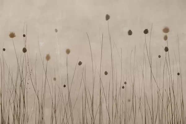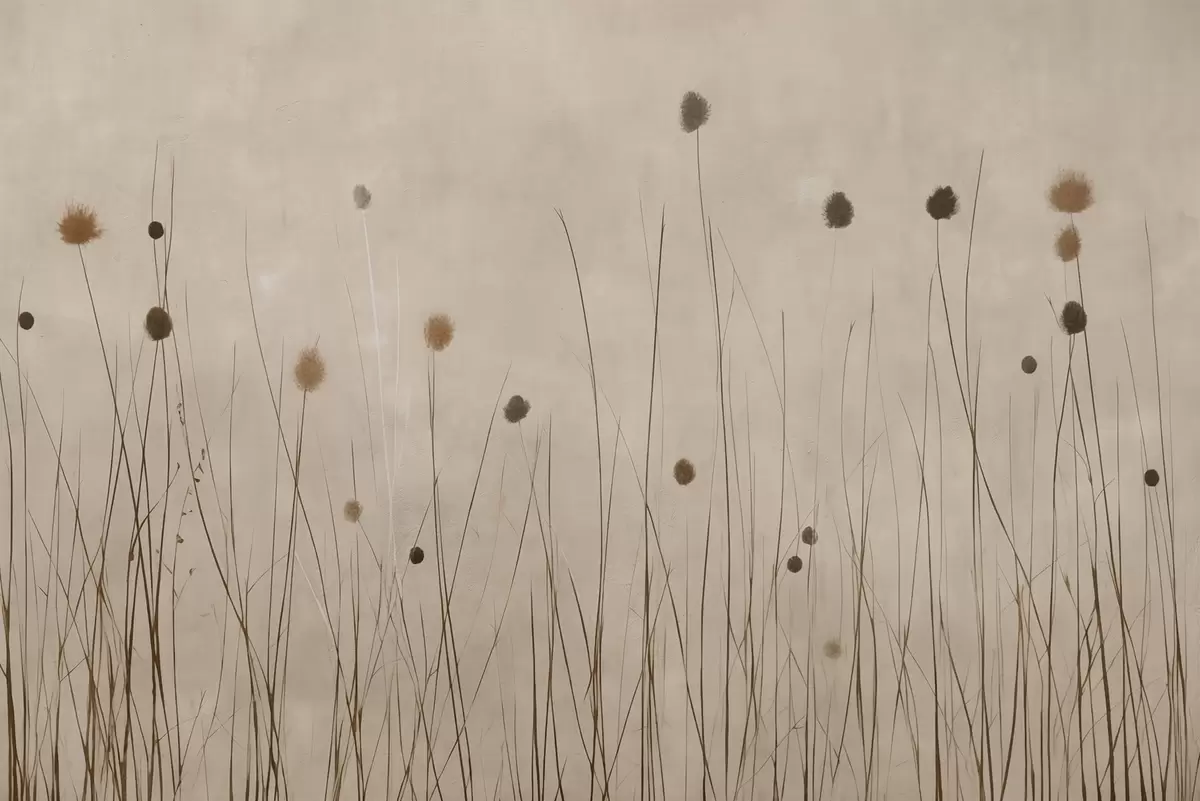 Fototapeta Cienkie trawy i puszyste główki nasion na ciepłym beżowym tle Nr w04793