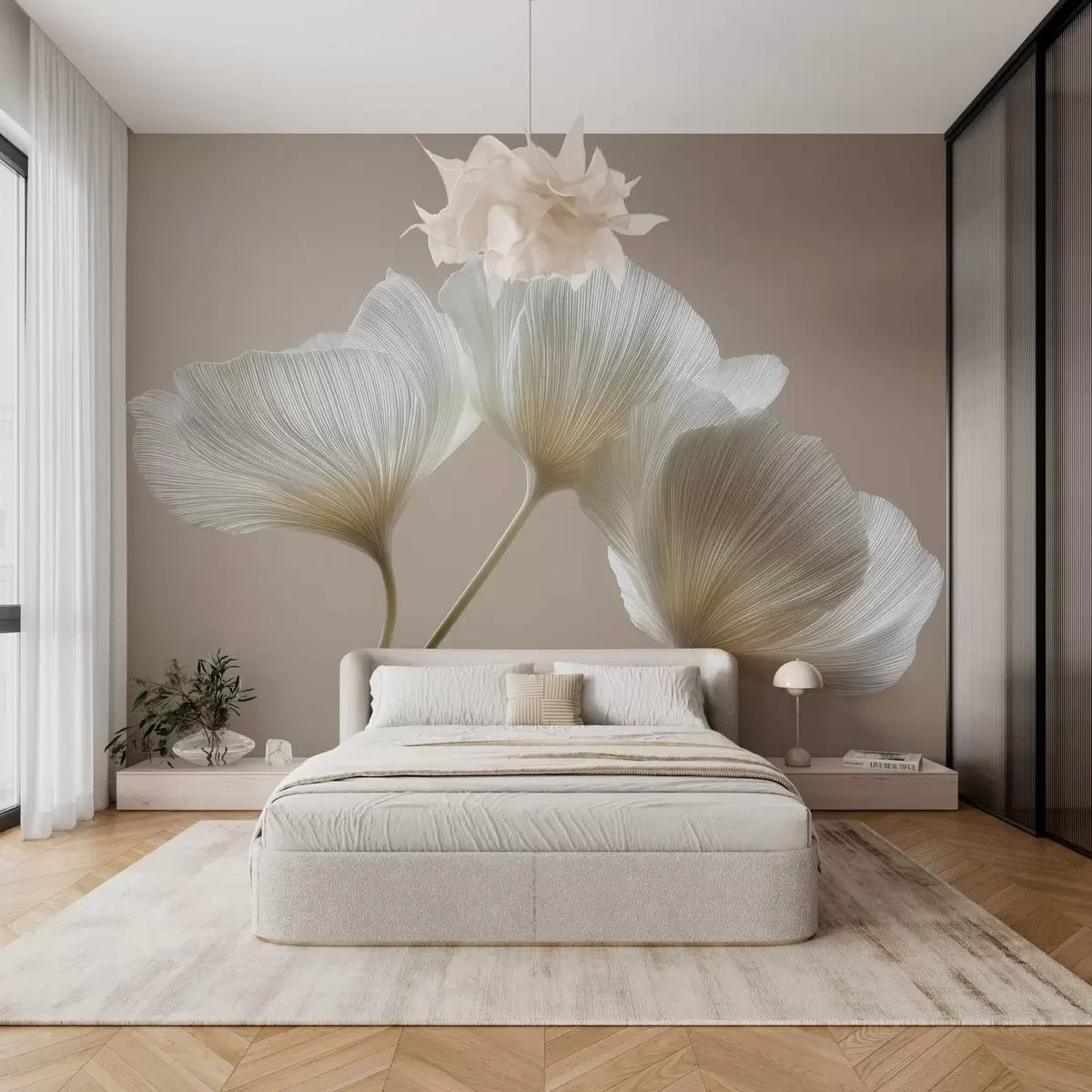 Fototapeta trzy delikatne kwiaty na beżowym tle Nr w04810