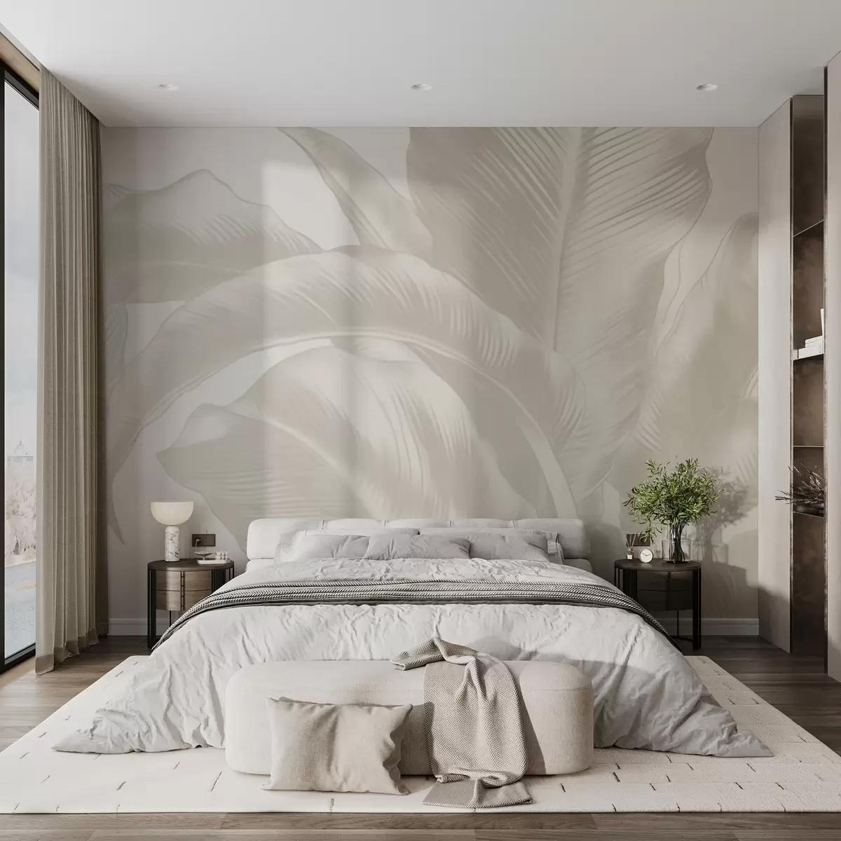 Fototapeta Długie liście, liście bananowca z efektem postarzenia Nr w04827