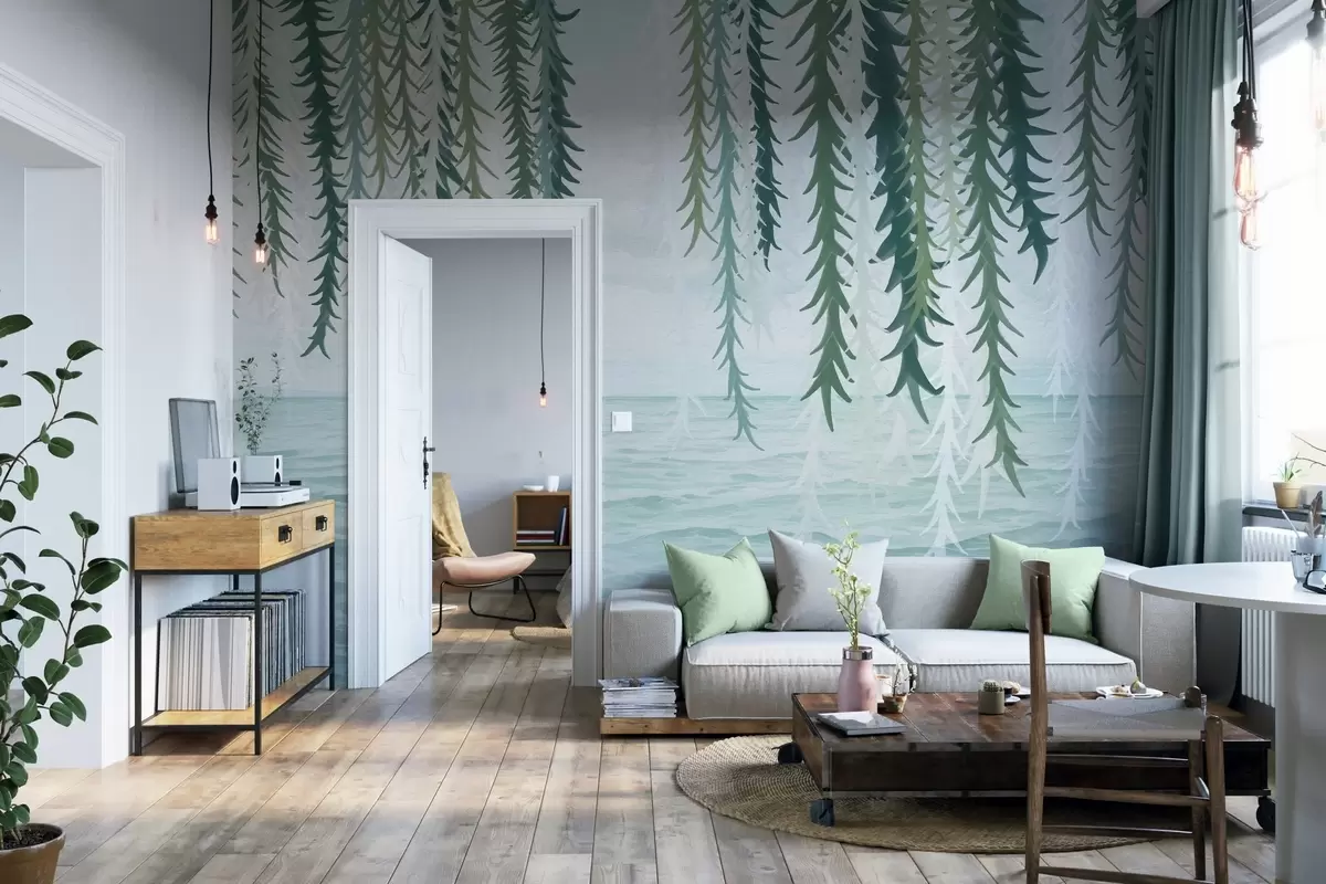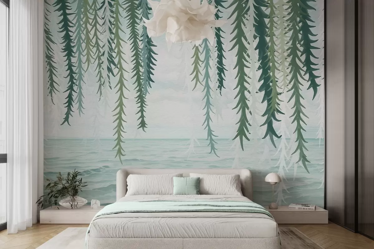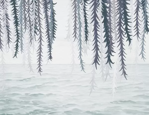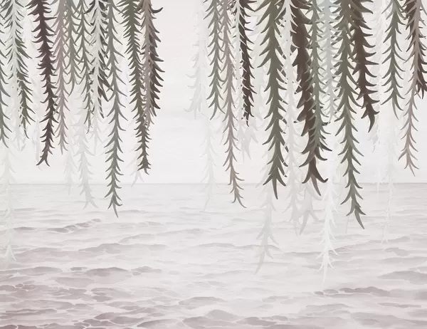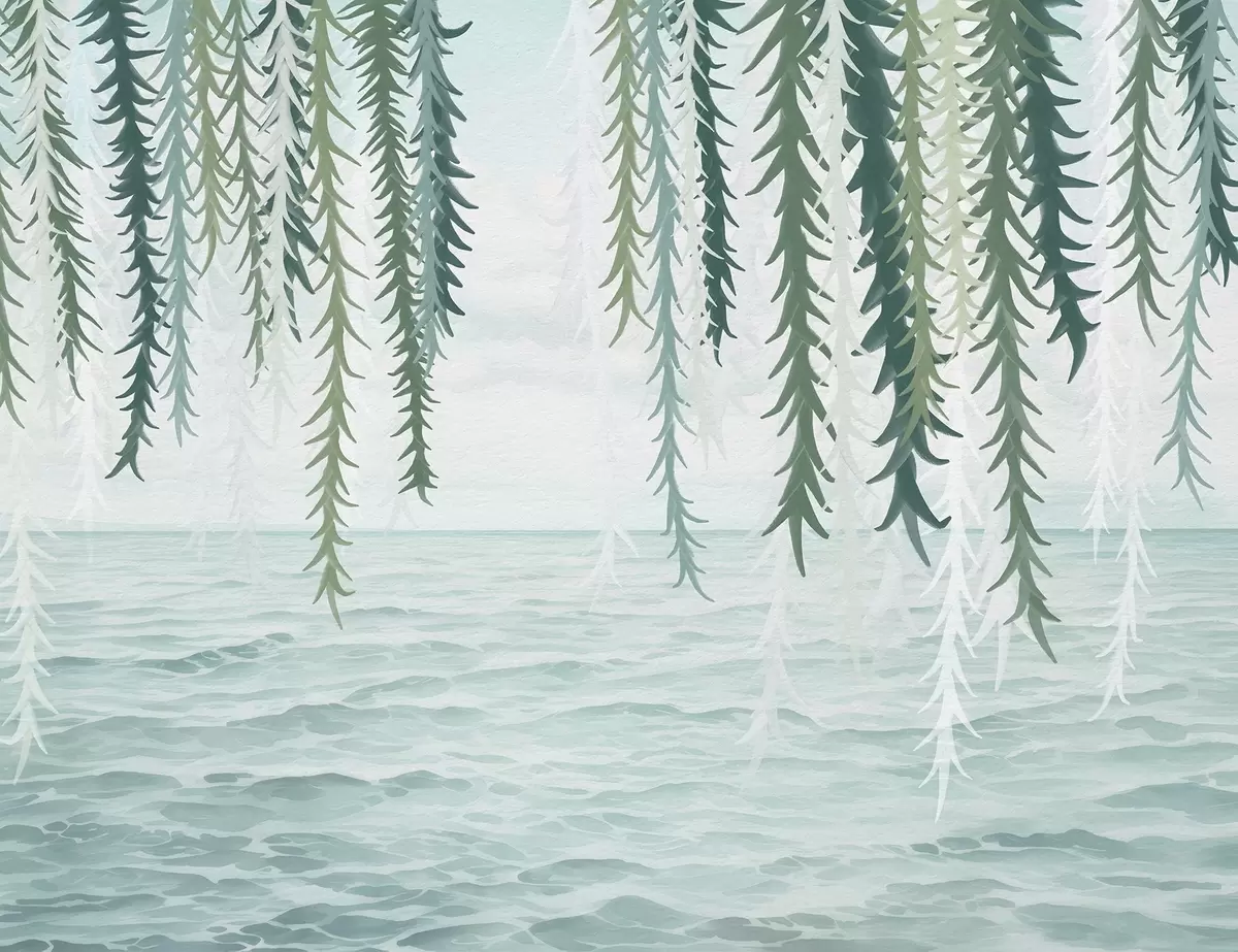 Fototapeta Delikatne pnącza zwisające nad wodą w stylu akwareli Nr w04830