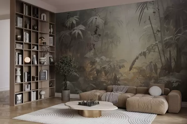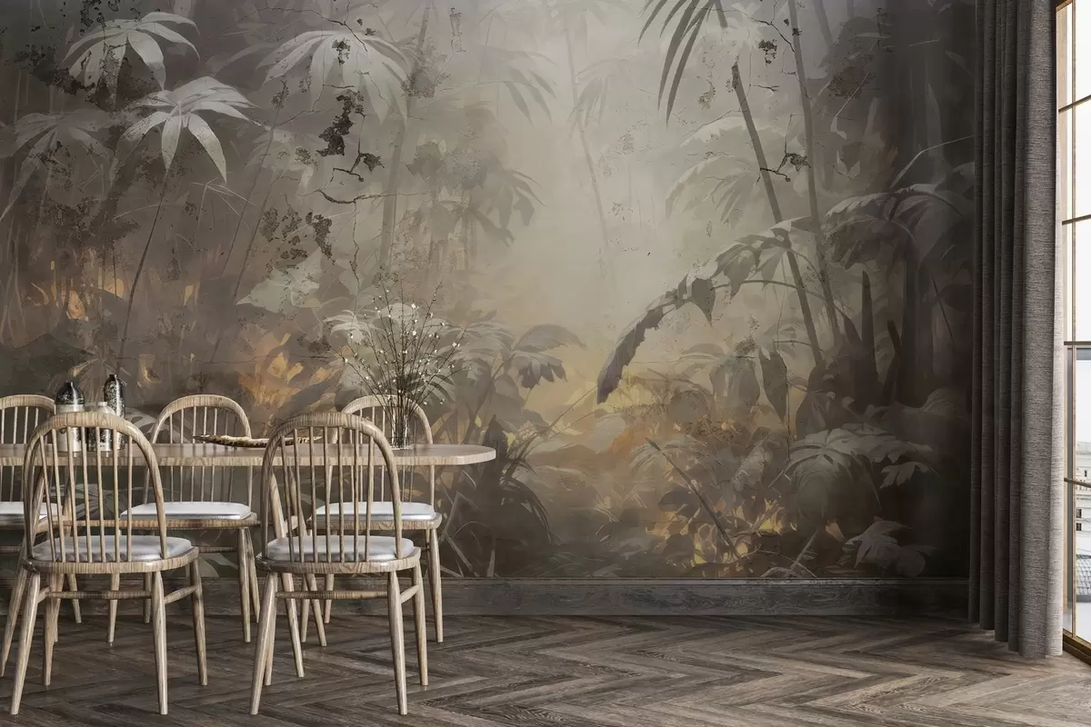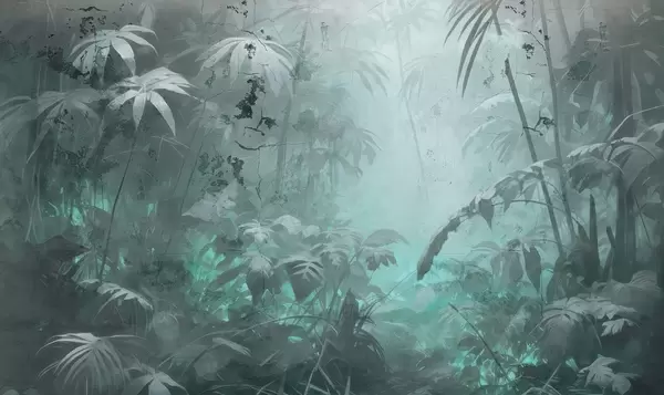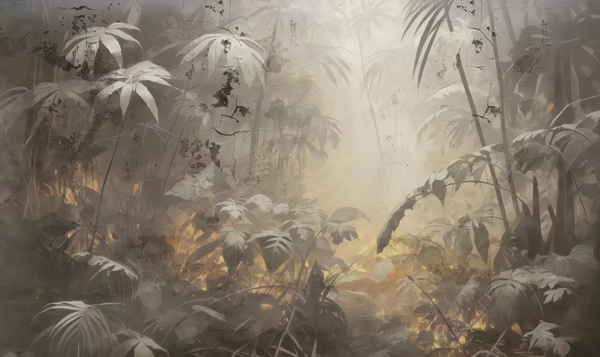 Fototapeta Malowana dżungla za brudną betonową ścianą Nr w04833