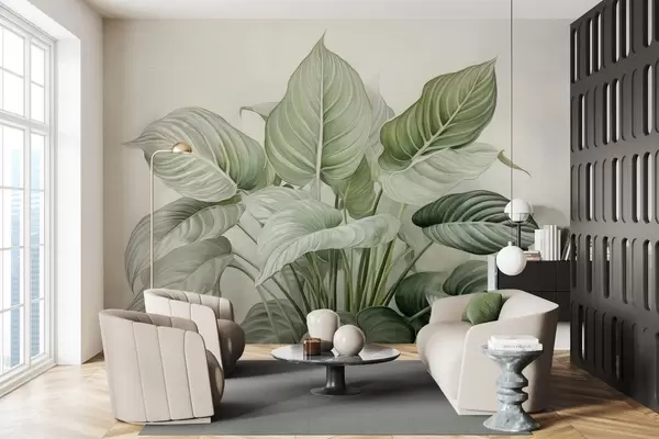 Fototapeta Bujny krzew zielonych liści na ścianie Nr w04835