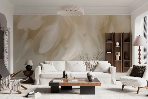 Fototapeta Bujne i delikatne wiszące pióra w kojących odcieniach Nr w04842