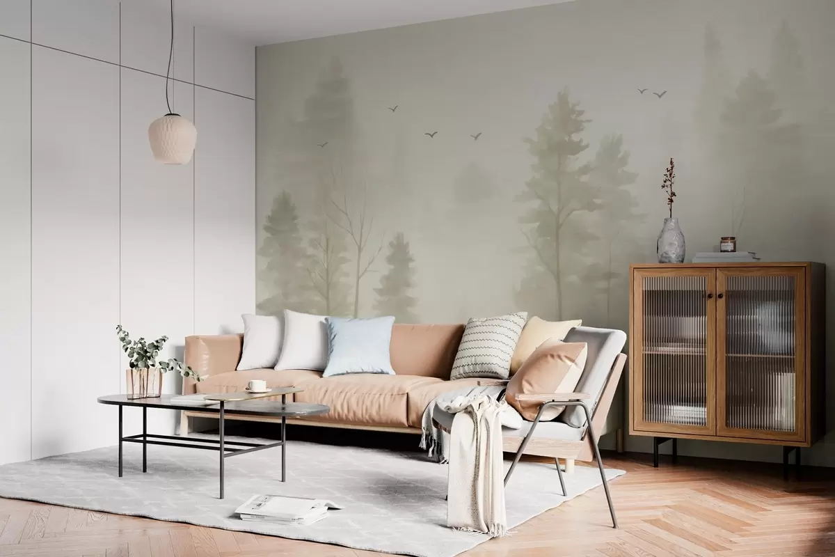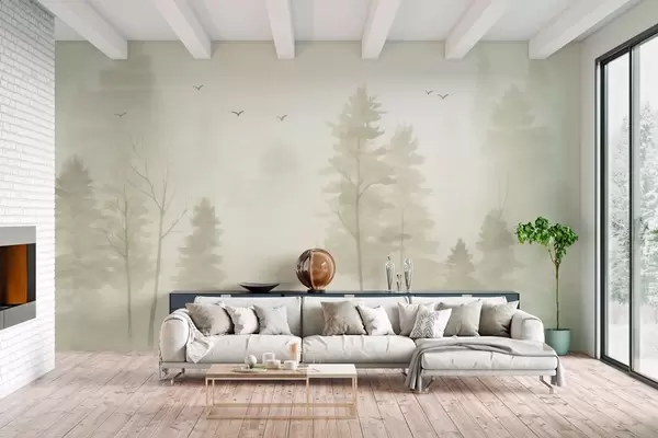 Fototapeta las w stylu akwareli w odcieniach beżu Nr w04872