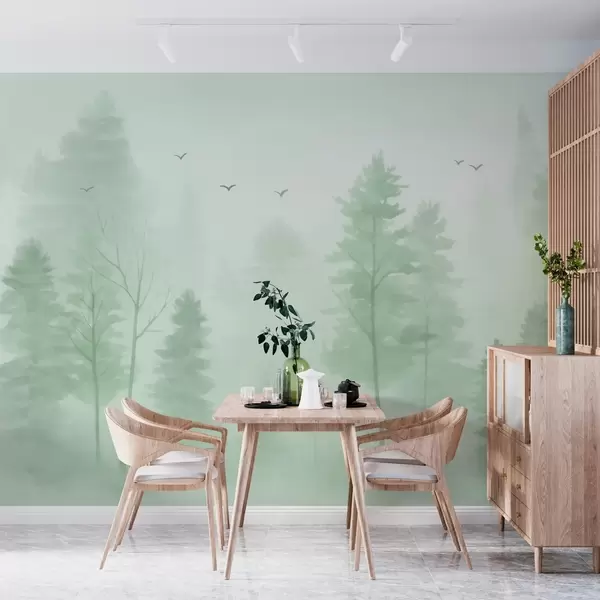 Fototapeta las z lotu ptaka w stylu akwareli, utrzymany w odcieniach zieleni Nr w04872v1