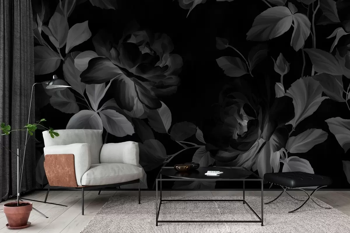Fototapeta czarno-białe malownicze róże w stylu obrazu olejnego Nr w04873v1
