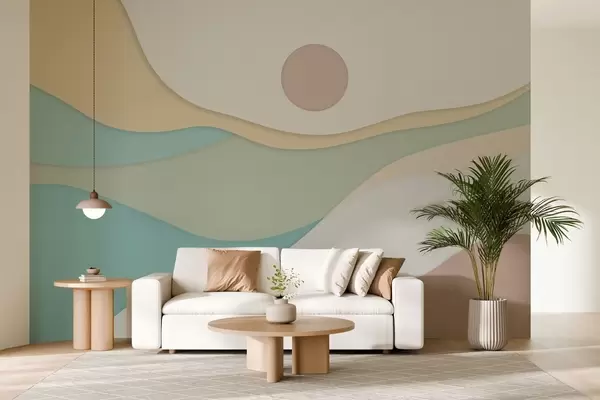 Fototapeta Minimalistyczna abstrakcja z miękkimi, falistymi formami przypominającymi płynące krajobrazy i wydmy. Nr w04874