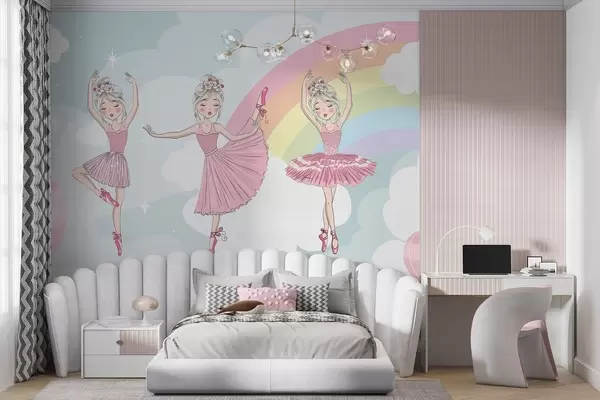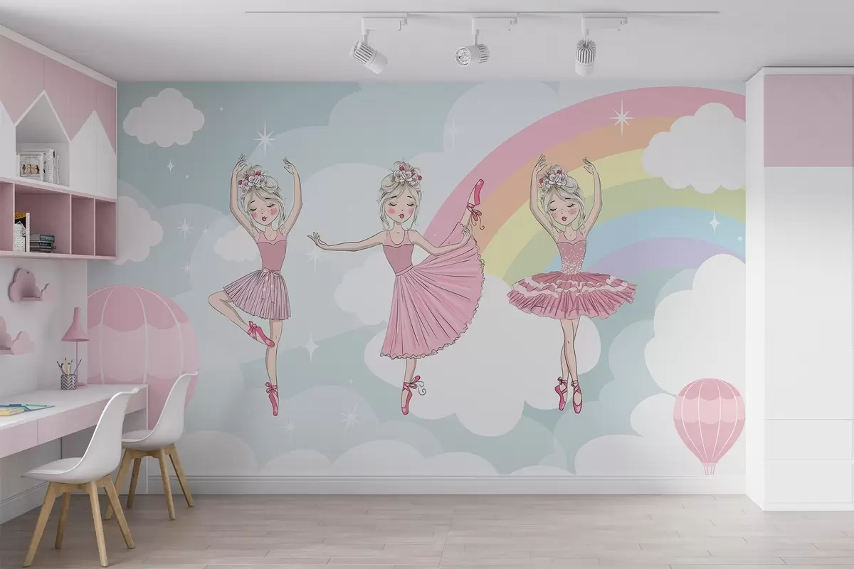 Fototapeta Księżniczki na tle nieba i tęczy Nr w04907