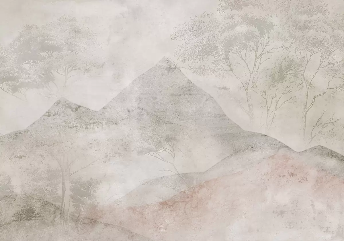 Fototapeta Miękkie pastelowe góry i drzewa w lekkiej mgle Nr w04954