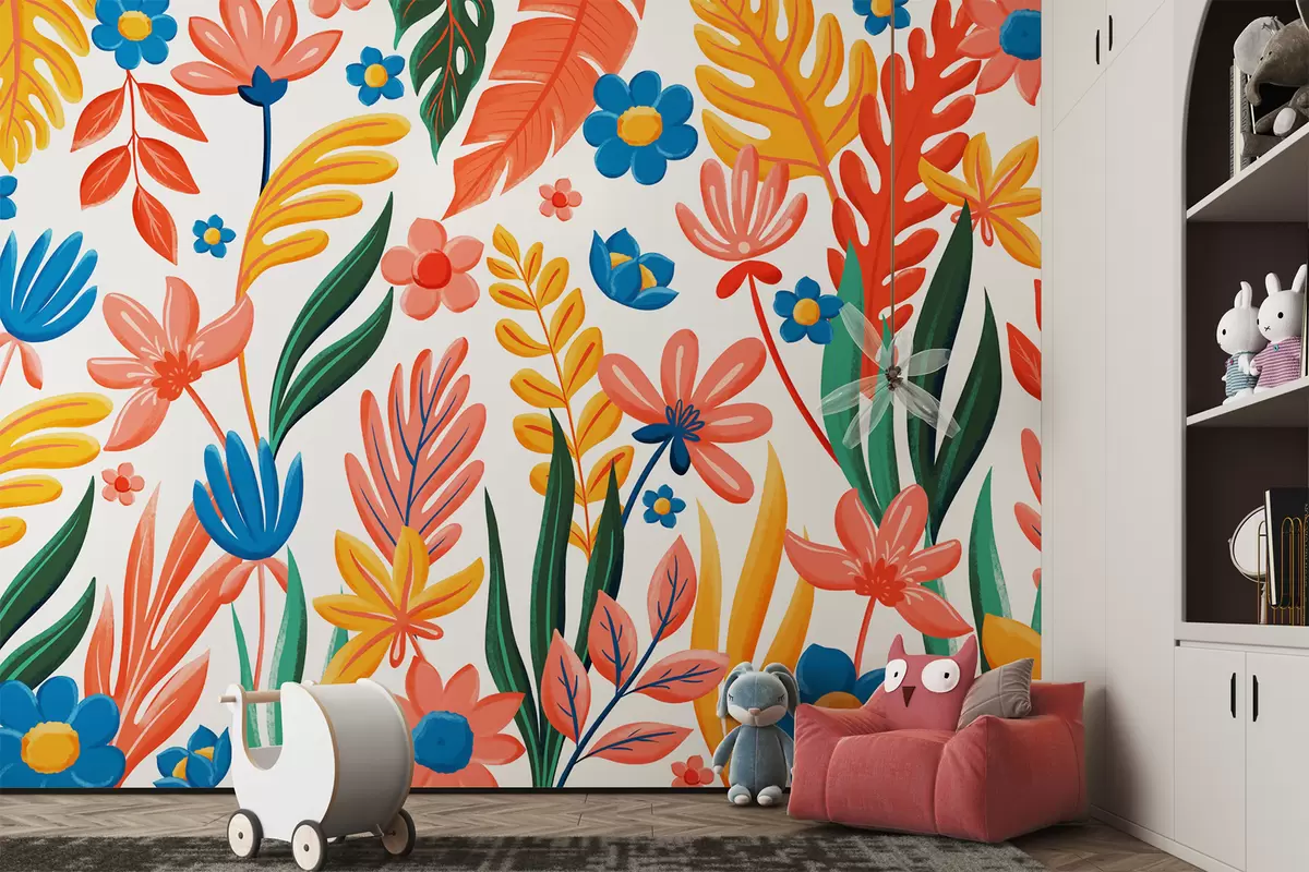 Fototapeta Jasny wzór z kwiatami i liśćmi Nr w05003