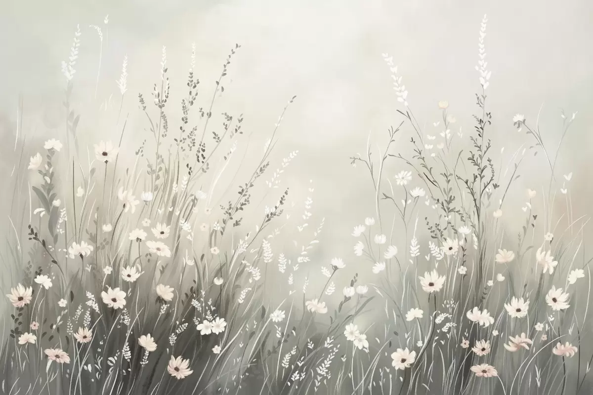 Fototapeta Delikatna scena na łące z białymi kwiatami i delikatnymi trawami Nr w05015v1