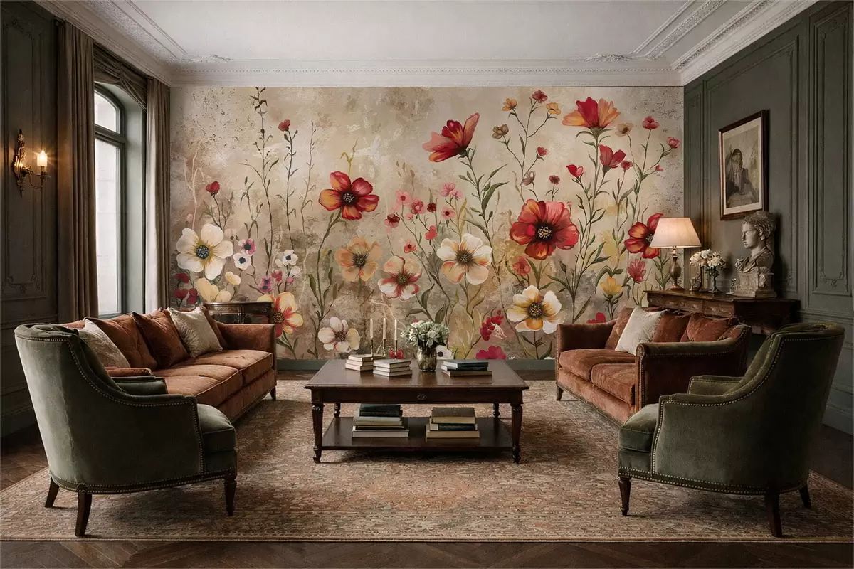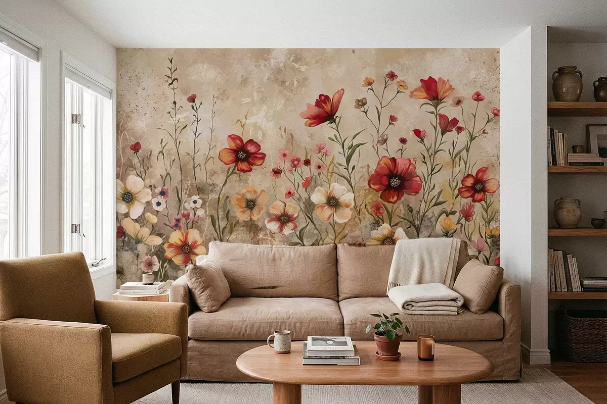 Fototapeta Kompozycja kwiatowa na teksturowanym tle w ciepłych odcieniach Nr w05016