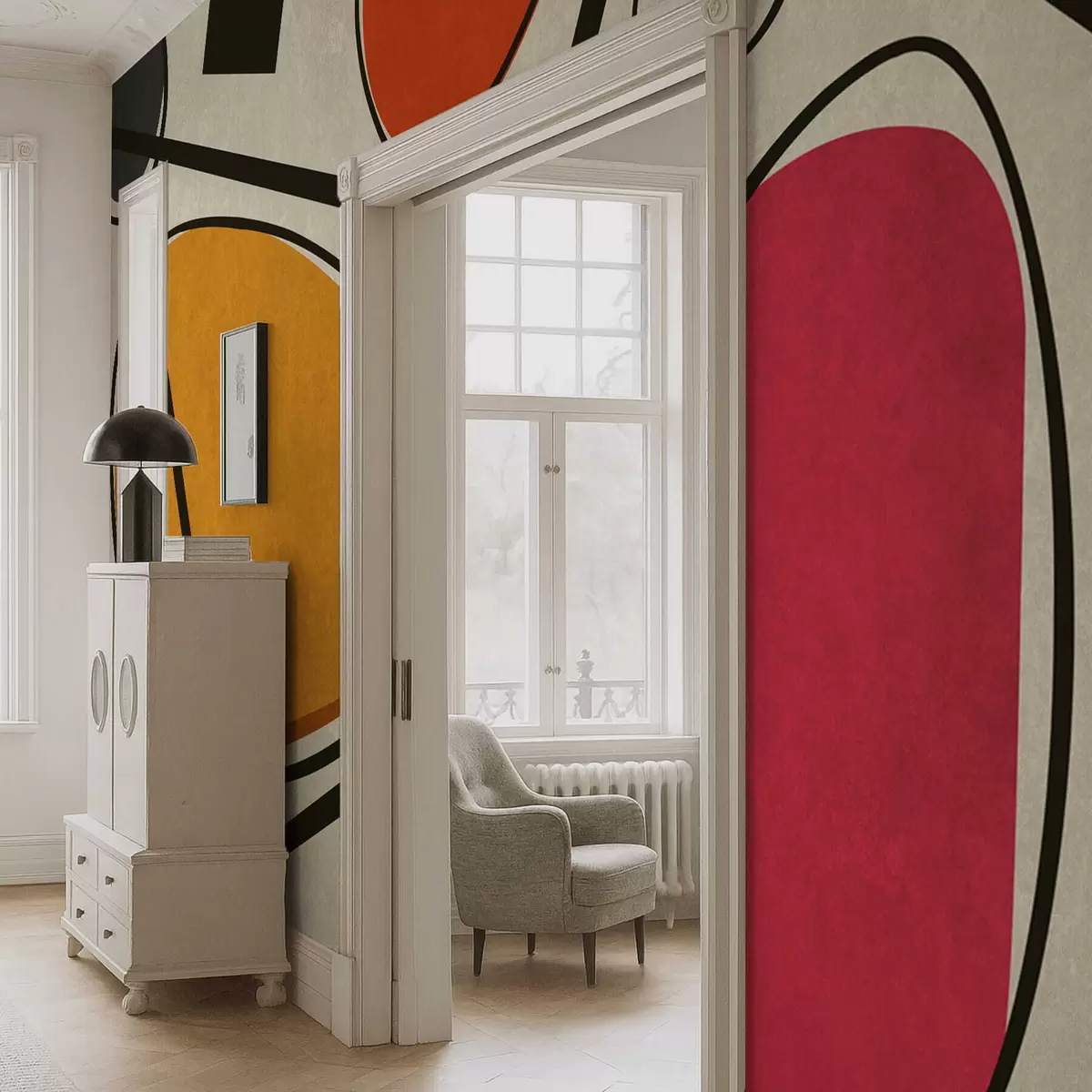 Fototapeta Abstrakcyjne kształty i linie z wyrazistymi polami kolorów Nr w05017