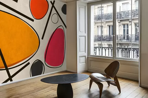 Fototapeta Abstrakcyjne kształty i linie z wyrazistymi polami kolorów Nr w05017