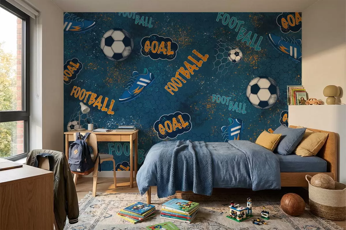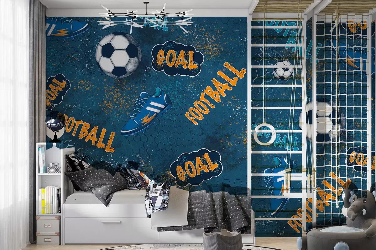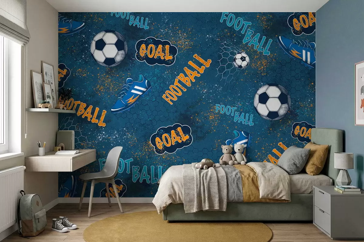 Fototapeta Wzór dla dzieci z piłkami, butami i sportowymi napisami Nr w05037