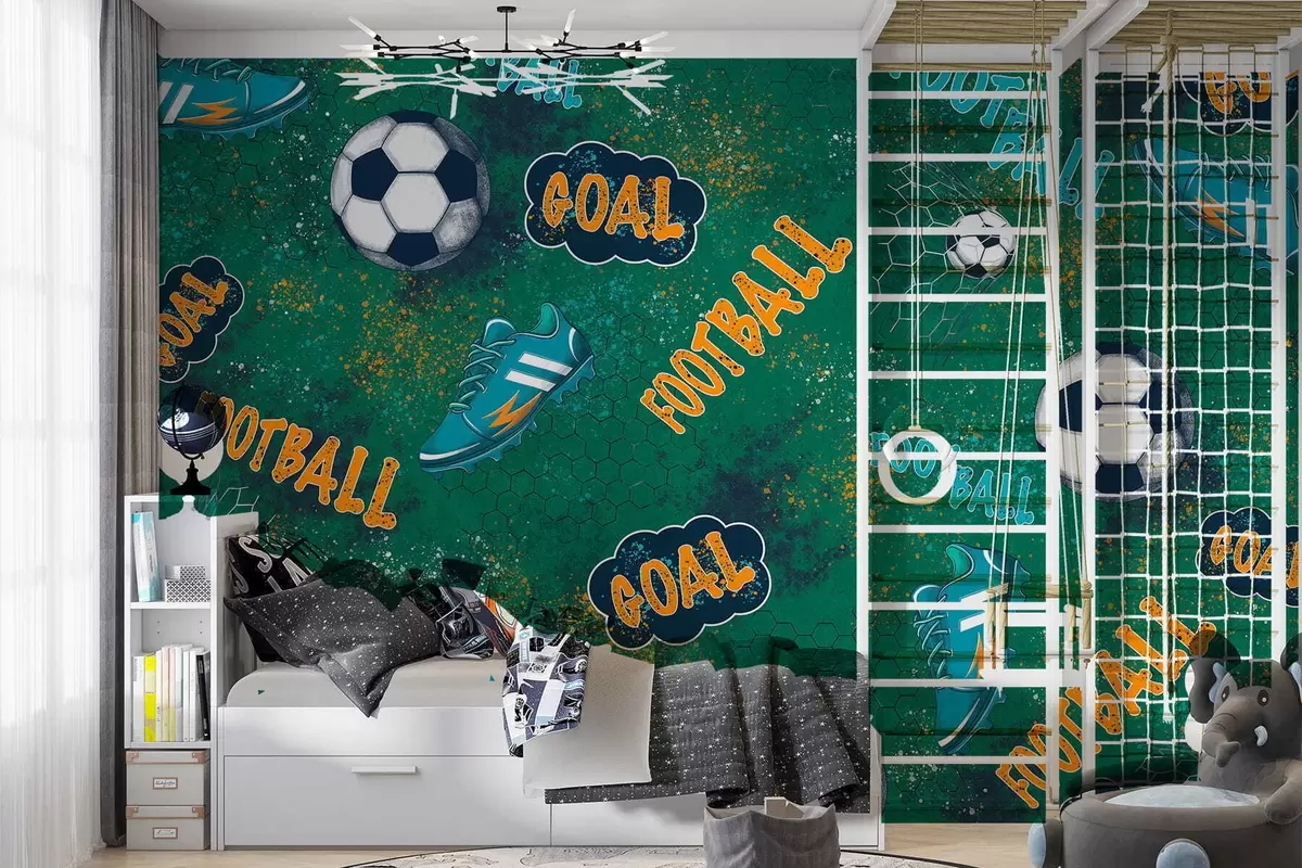 Fototapeta Wzór piłki nożnej dla dzieci w odcieniach zieleni Nr w05037v1
