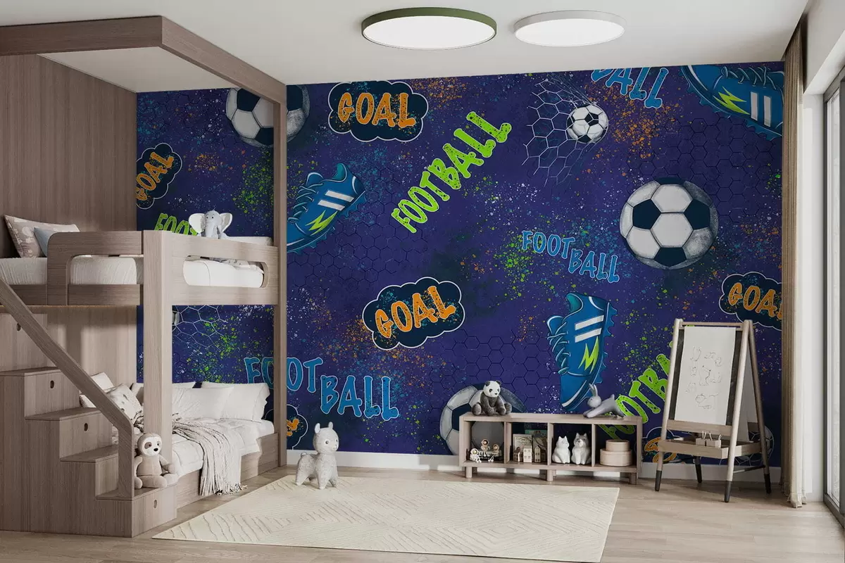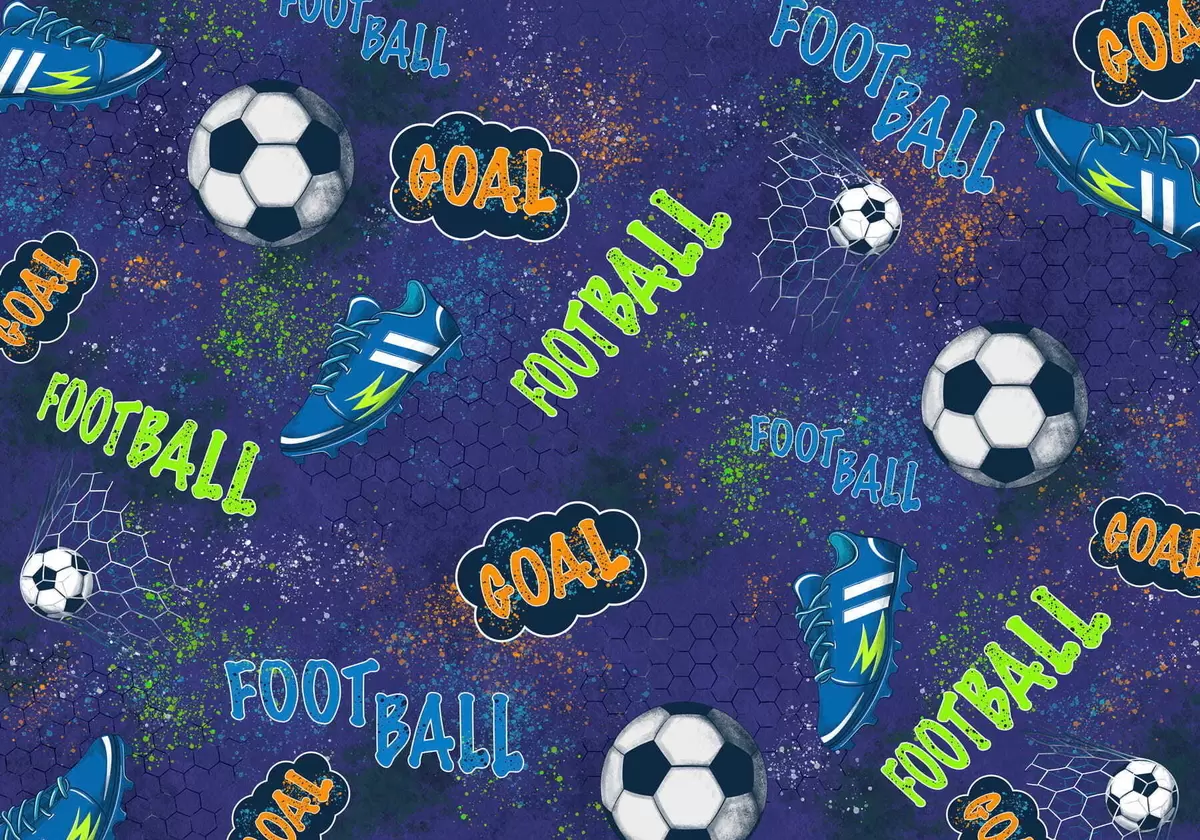 Fototapeta Wzór piłki nożnej dla dzieci w ciemnoniebieskich odcieniach Nr w05037v3