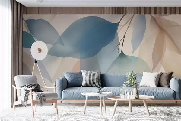 Fototapeta eleganckie, półprzezroczyste liście w odcieniach niebieskiego i beżu Nr w05060