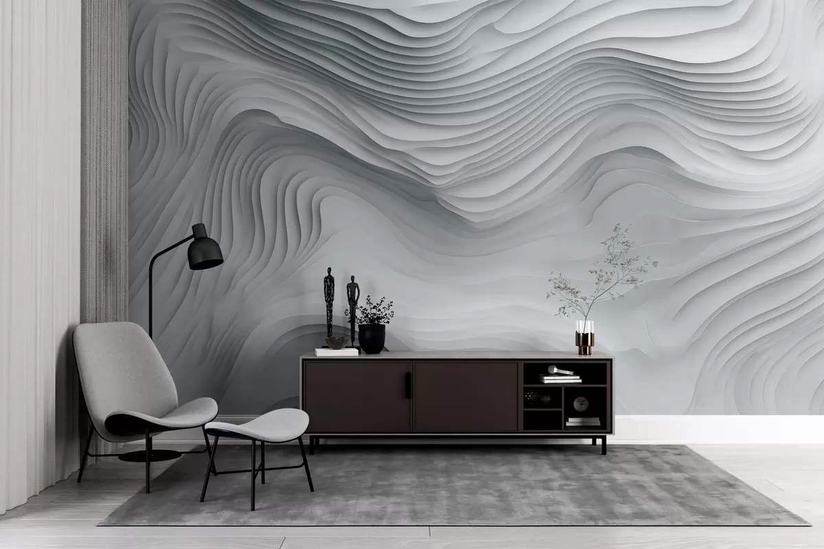 Fototapeta imitacja obszernych, schodkowych reliefów w odcieniach szarości Nr w05061