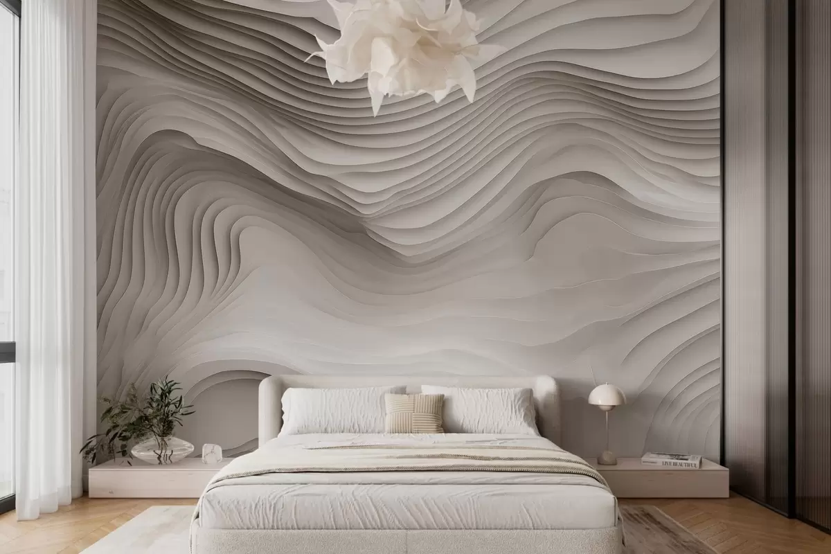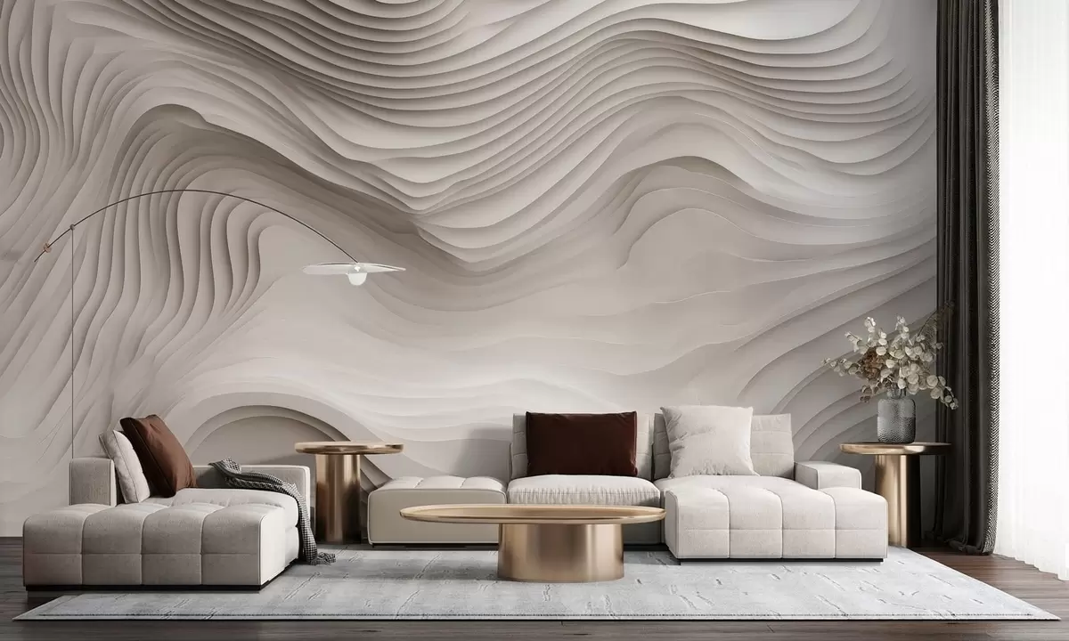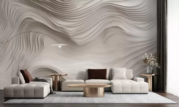 Fototapeta imitacja obszernych, schodkowych reliefów w odcieniach beżu Nr w05061v1