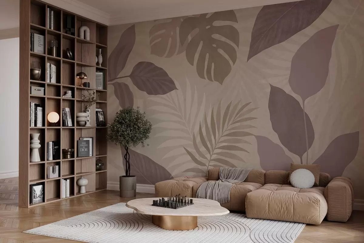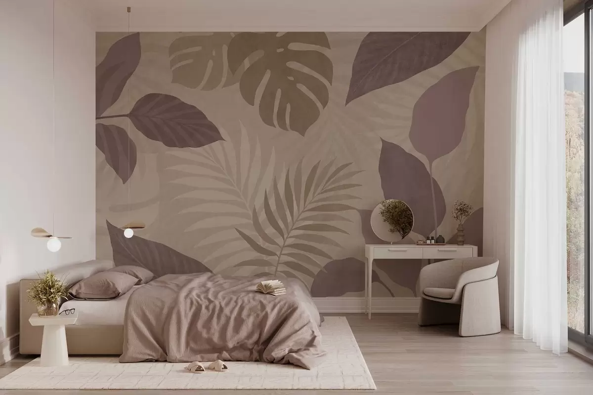 Fototapeta teksturowane tropikalne liście na piaskowym tle Nr w05063
