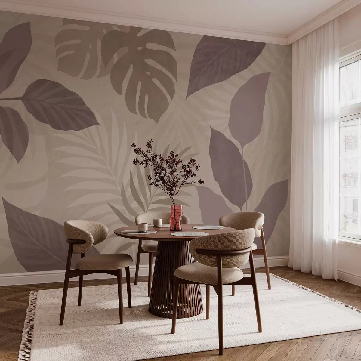 Fototapeta teksturowane tropikalne liście na piaskowym tle Nr w05063