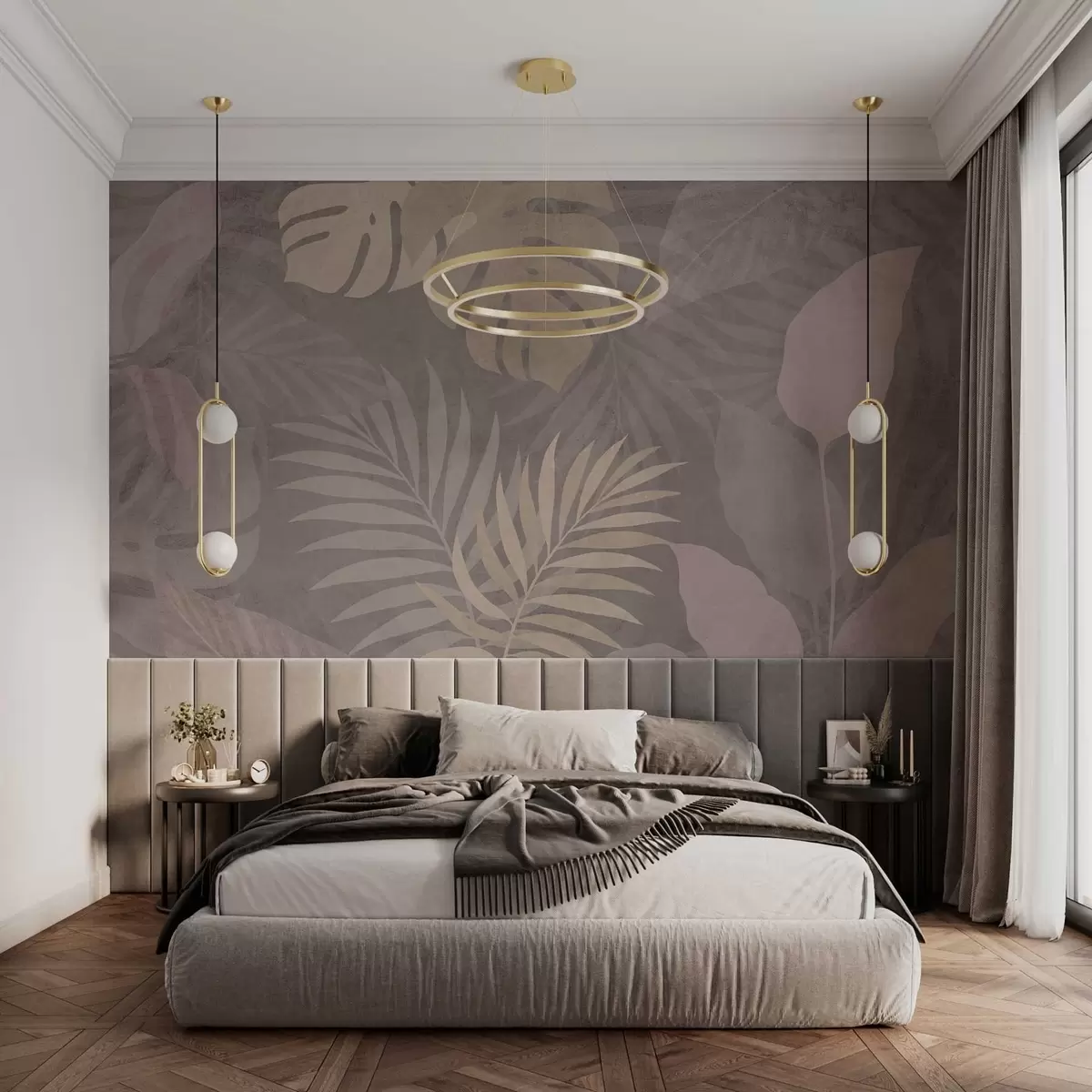 Fototapeta teksturowane tropikalne liście na szarym tle Nr w05063v1