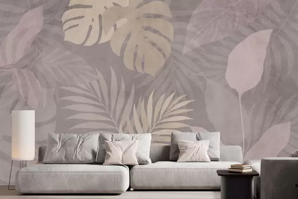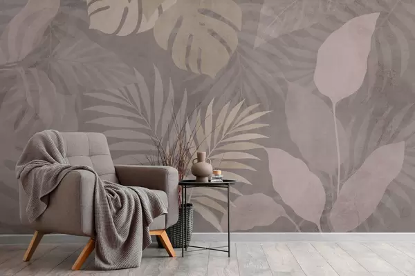 Fototapeta teksturowane tropikalne liście na szarym tle Nr w05063v1