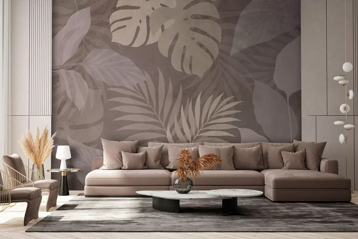 Fototapeta teksturowane tropikalne liście na czekoladowym tle Nr w05063v2