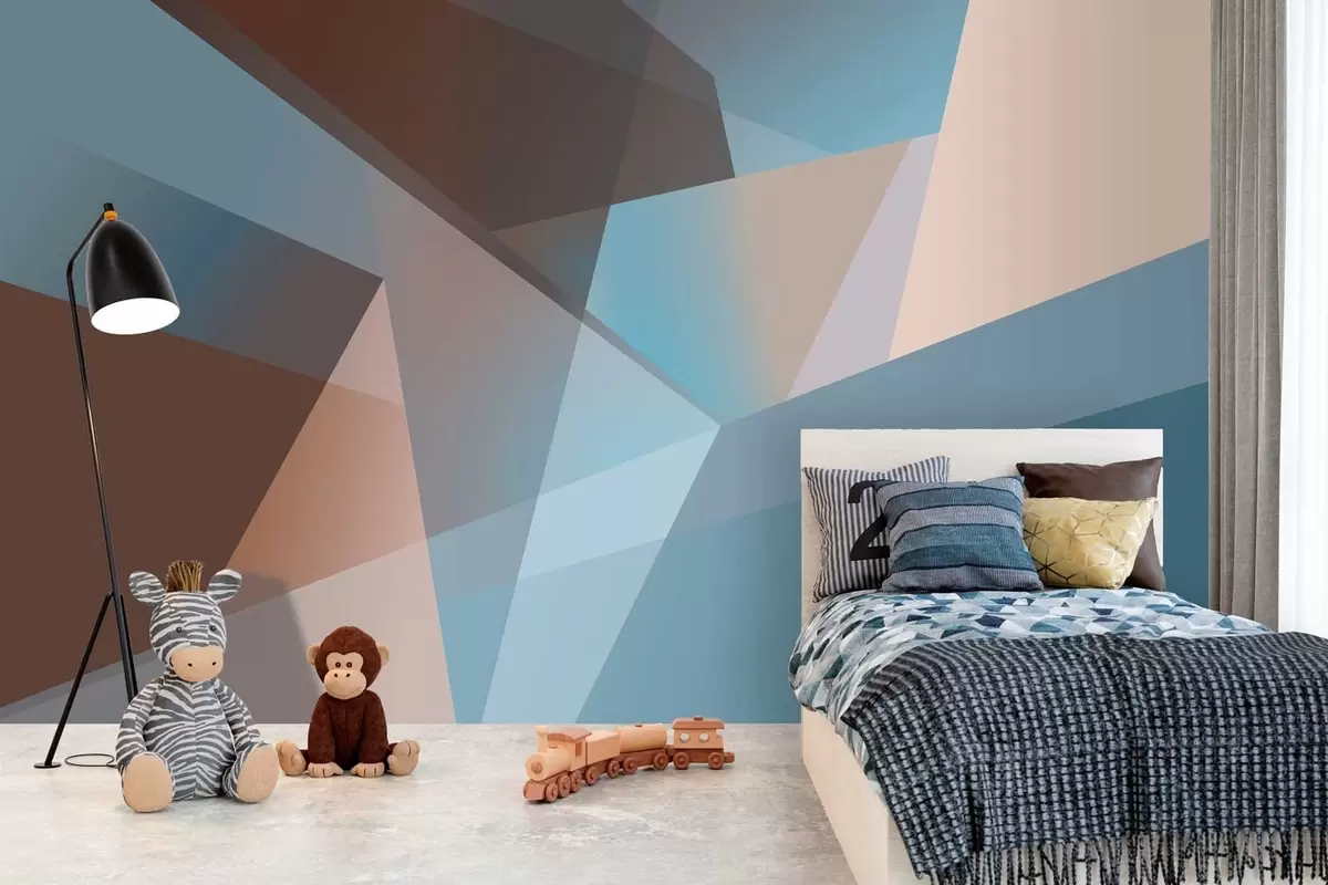Fototapeta abstrakcyjna geometria w odcieniach niebieskiego i brązowego Nr w05064
