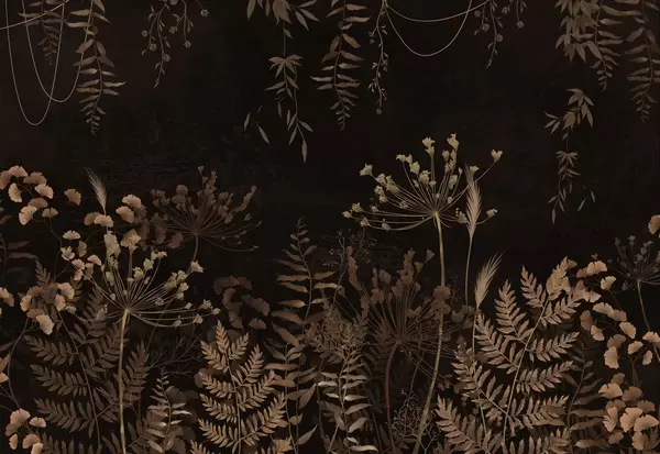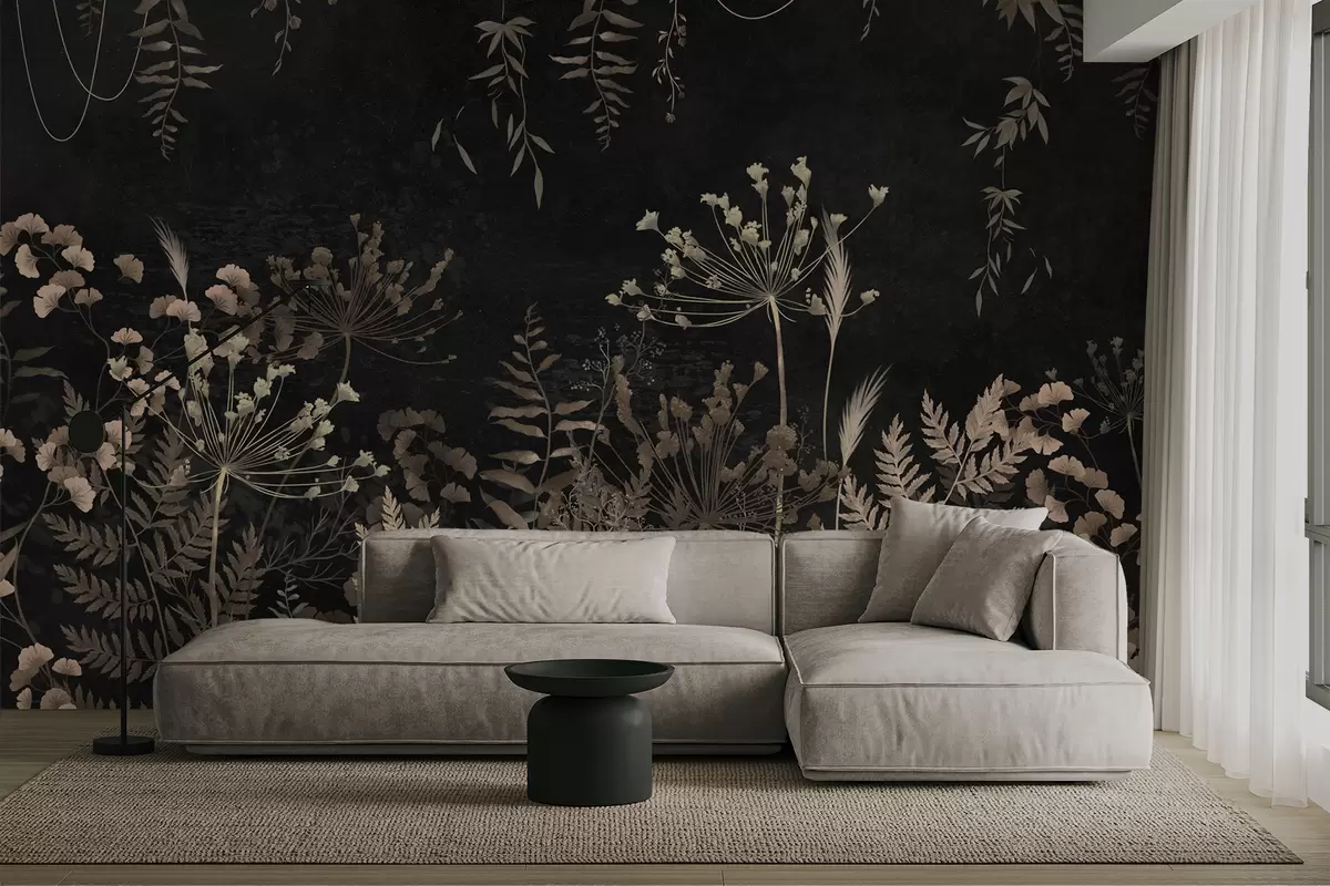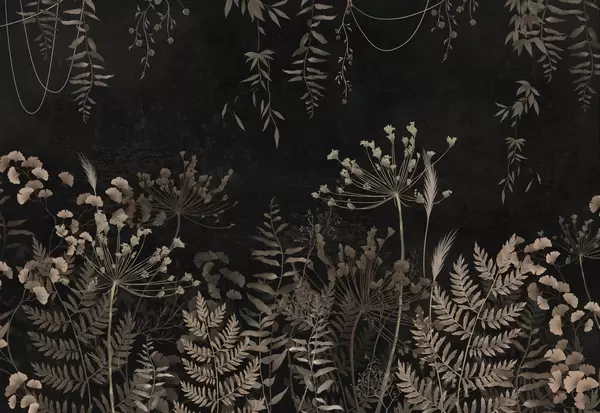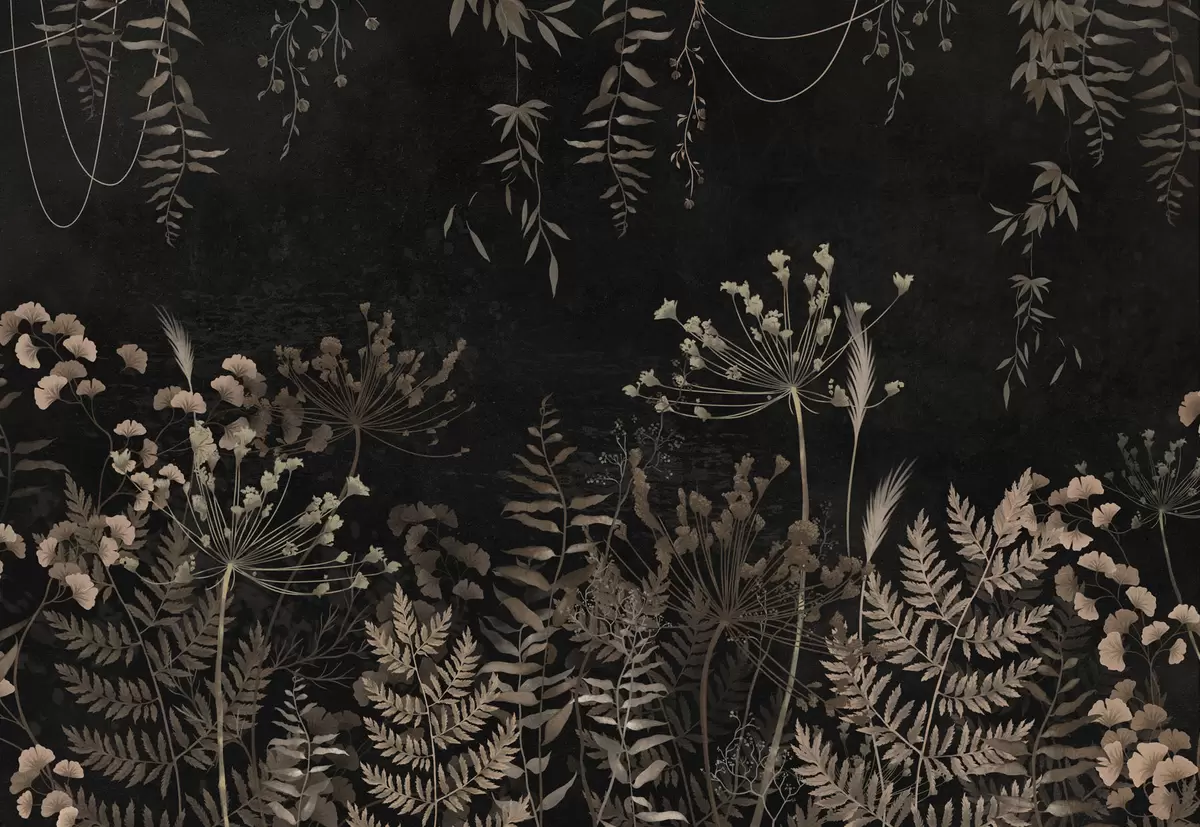 Fototapeta Ciemny wzór roślinny z kwiatami i liśćmi Nr w05092