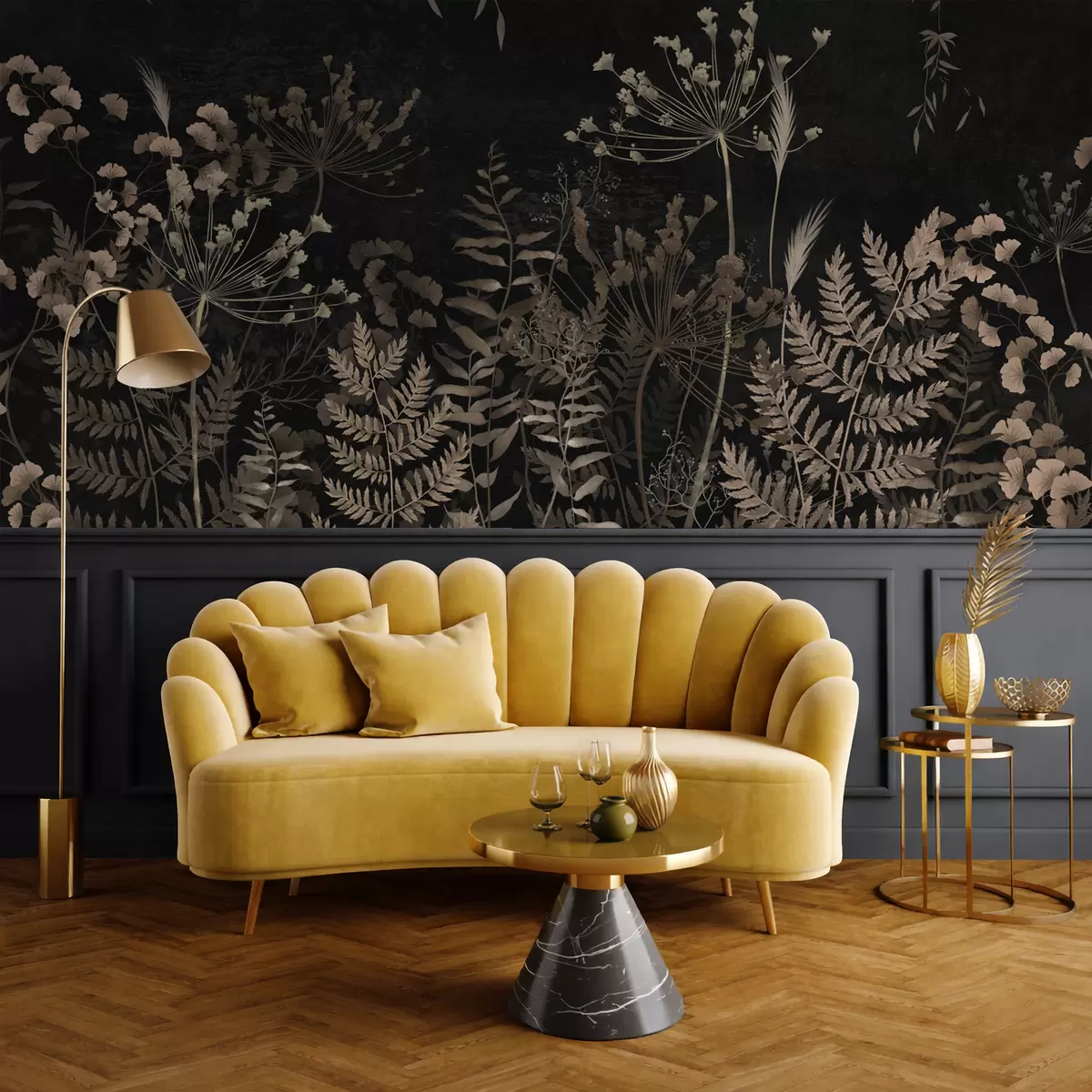 Fototapeta Ciemny wzór roślinny z kwiatami i liśćmi Nr w05092