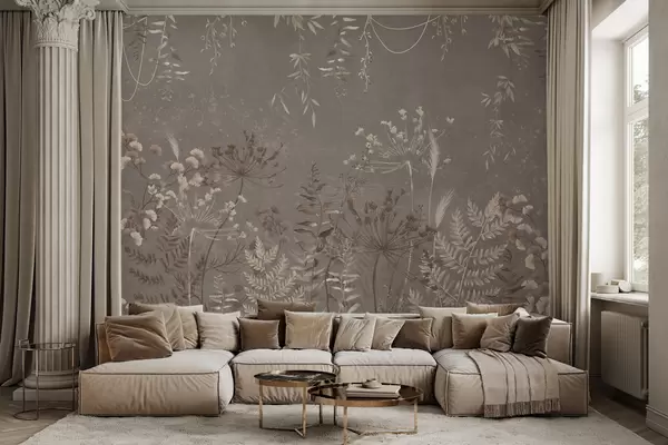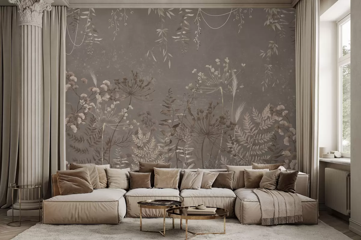 Fototapeta Delikatny wzór roślinny z kwiatami i liśćmi Nr w05092v1