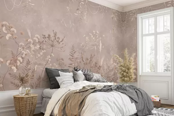 Fototapeta Delikatny beżowy wzór roślinny z polnymi kwiatami Nr w05092v2
