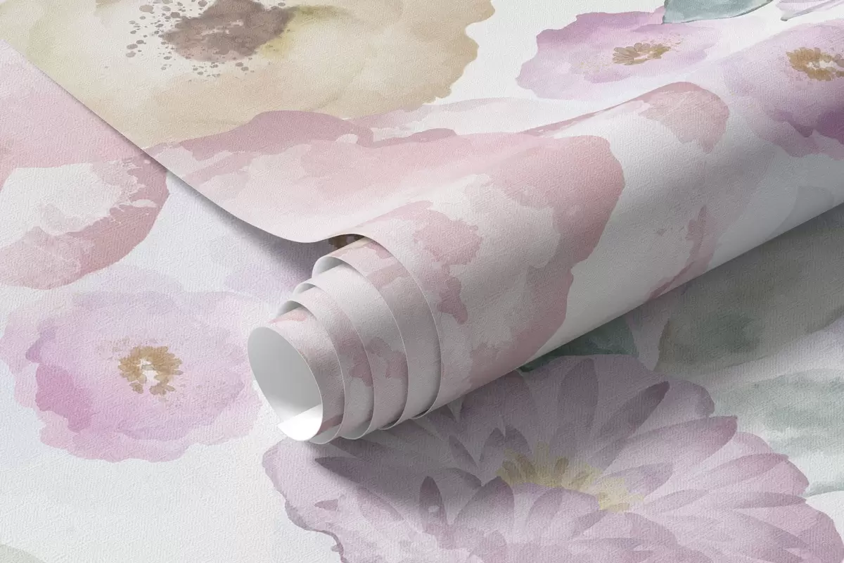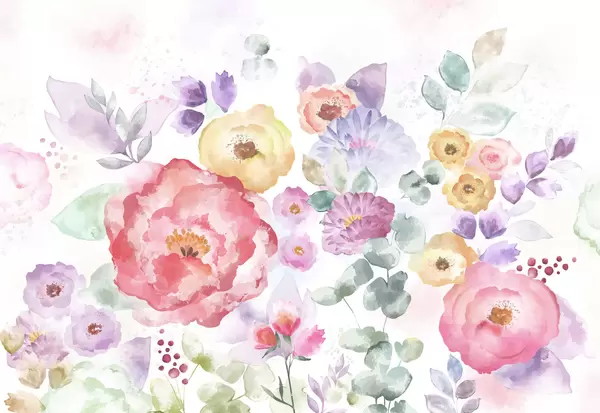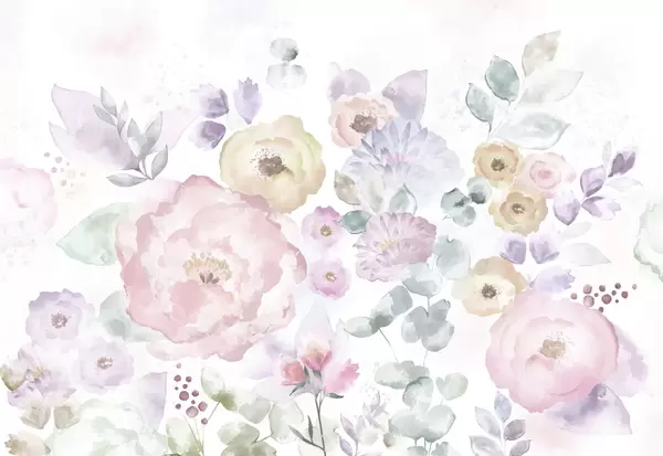 Fototapeta Delikatna kompozycja akwarelowa z kwiatami i liśćmi Nr w05093