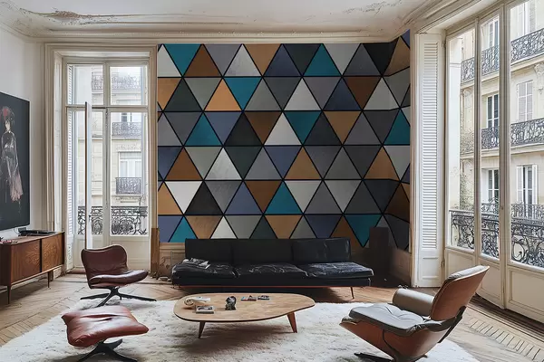 Fototapeta Trójkątny wzór geometryczny w niebieskich i ciepłych odcieniach Nr w05095