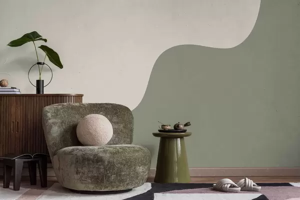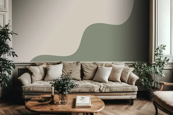 Fototapeta Gładkie abstrakcyjne kształty w jasnych odcieniach beżu i zieleni Nr w05097