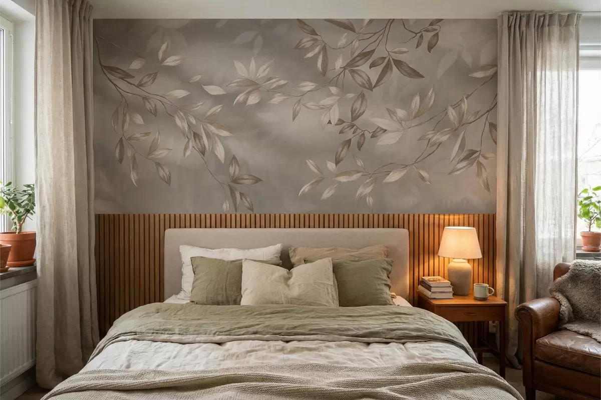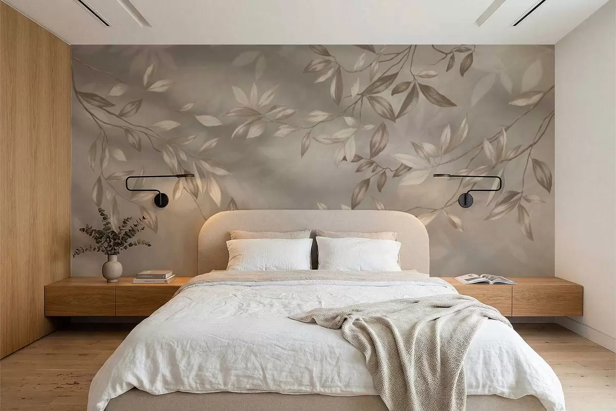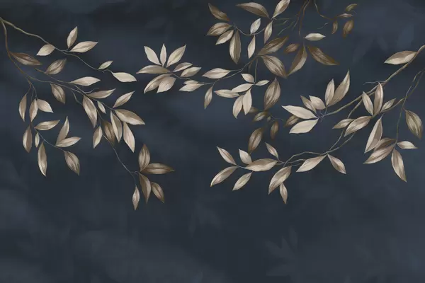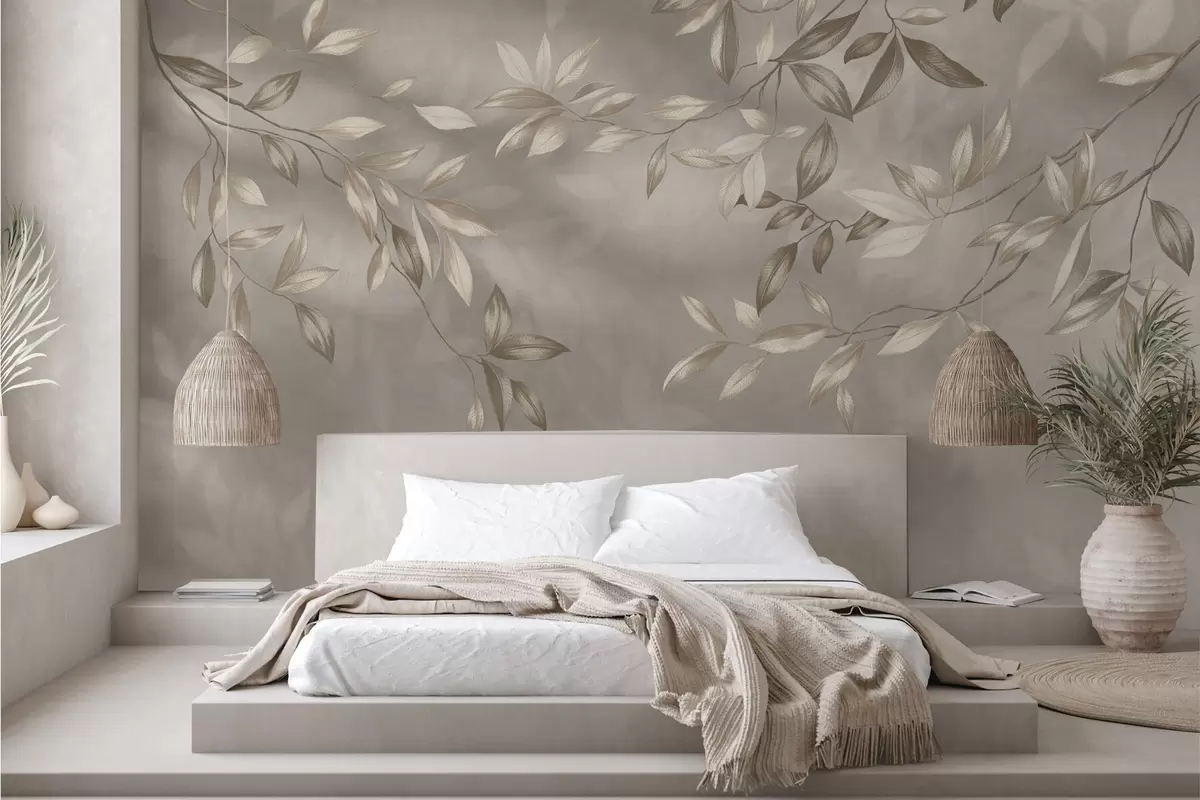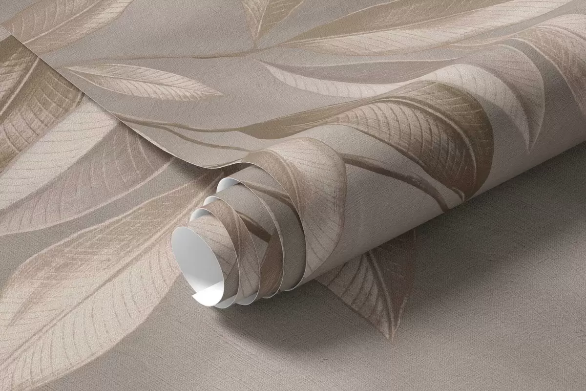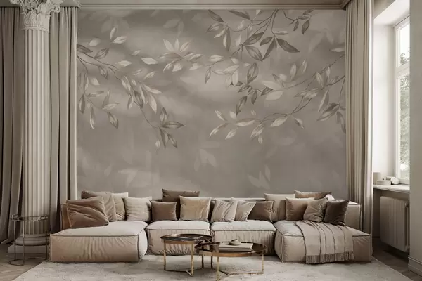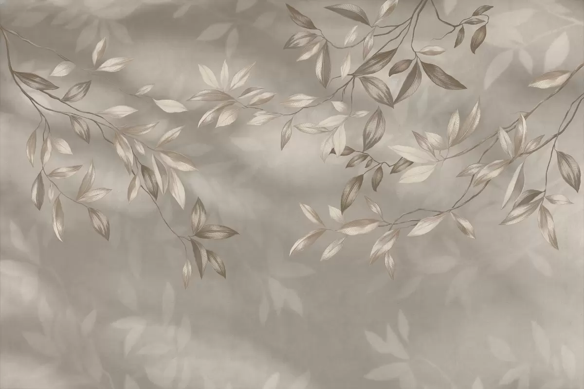Fototapeta Eleganckie, liściaste gałęzie w odcieniach beżu na jasnym tle Nr w05113