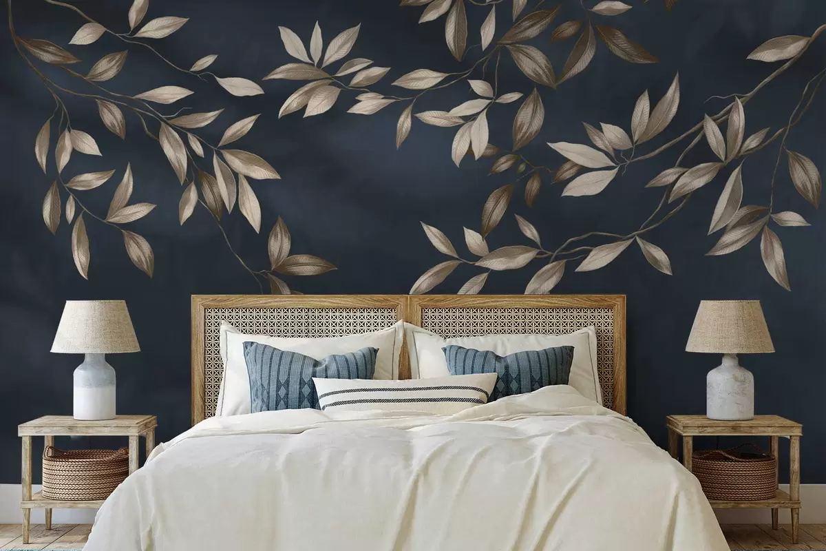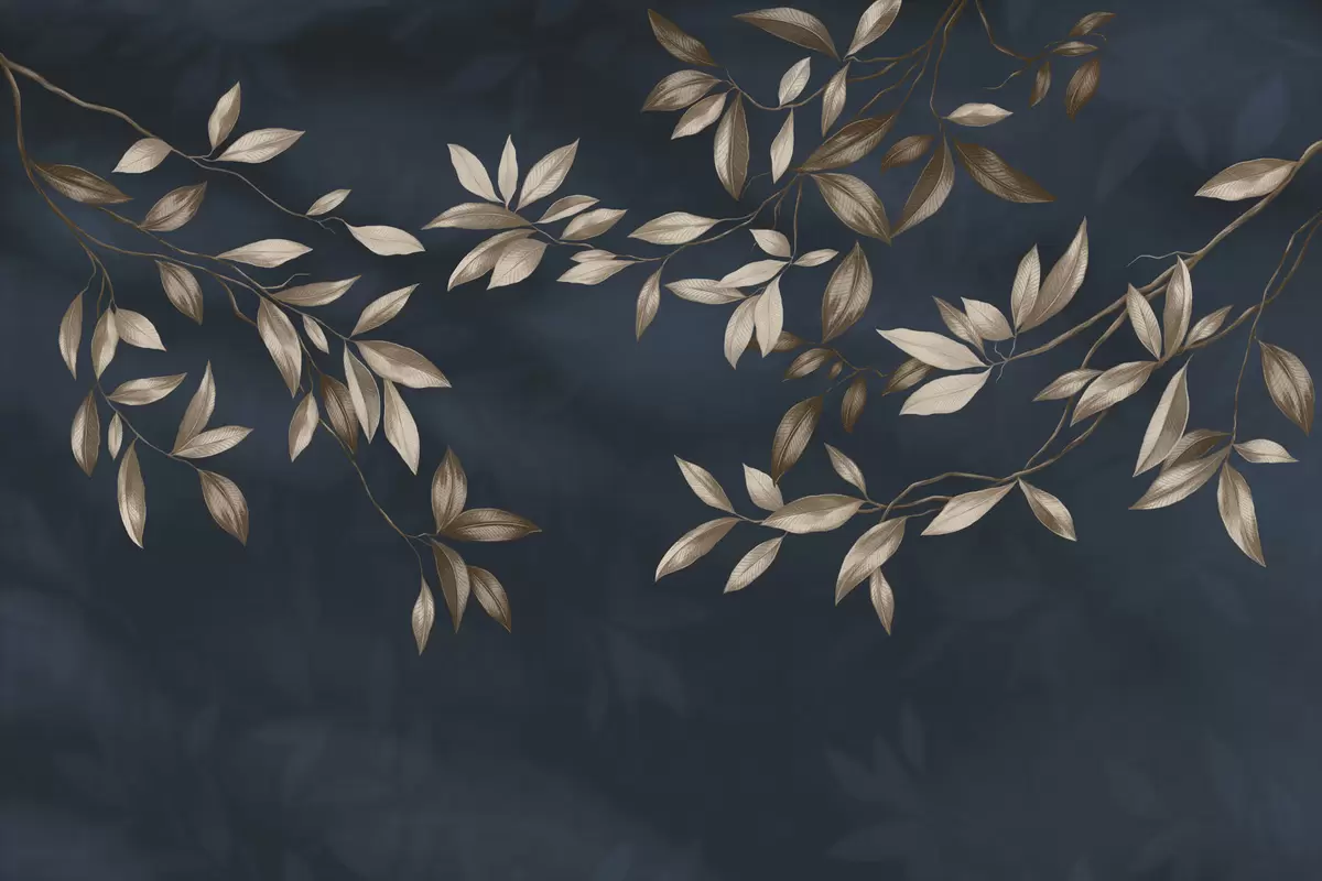 Fototapeta Ozdobne gałęzie liściaste na ciemnoniebieskim tle Nr w05113v1