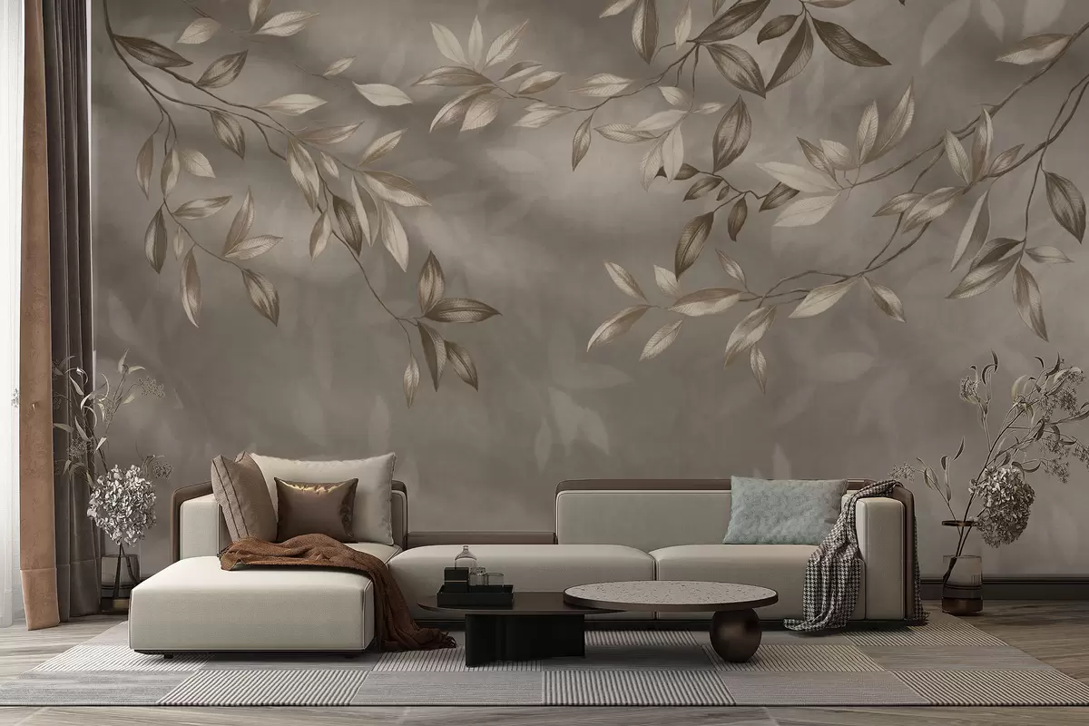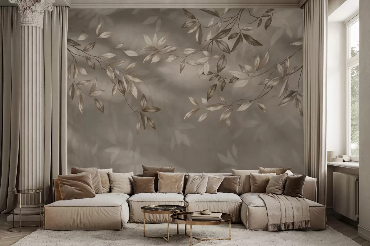Fototapeta Delikatne, liściaste gałęzie w odcieniach beżu na jasnym tle Nr w05113v2