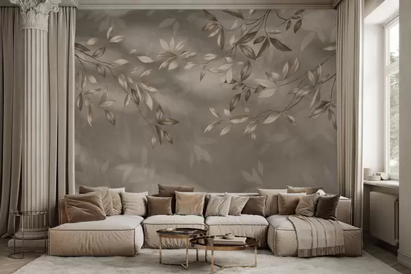 Fototapeta Delikatne, liściaste gałęzie w odcieniach beżu na jasnym tle Nr w05113v2