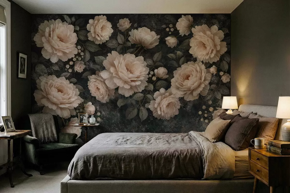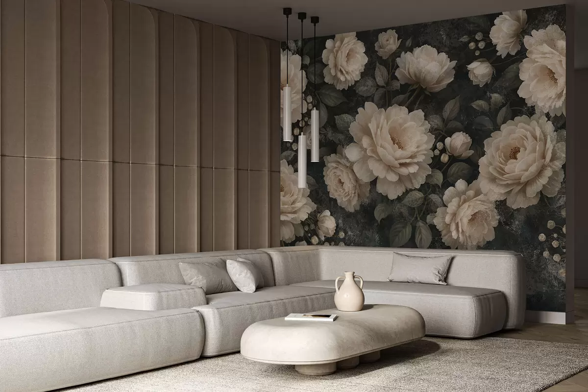 Fototapeta Objętościowe kwiaty w beżowej palecie na ciemnym tle Nr w05114