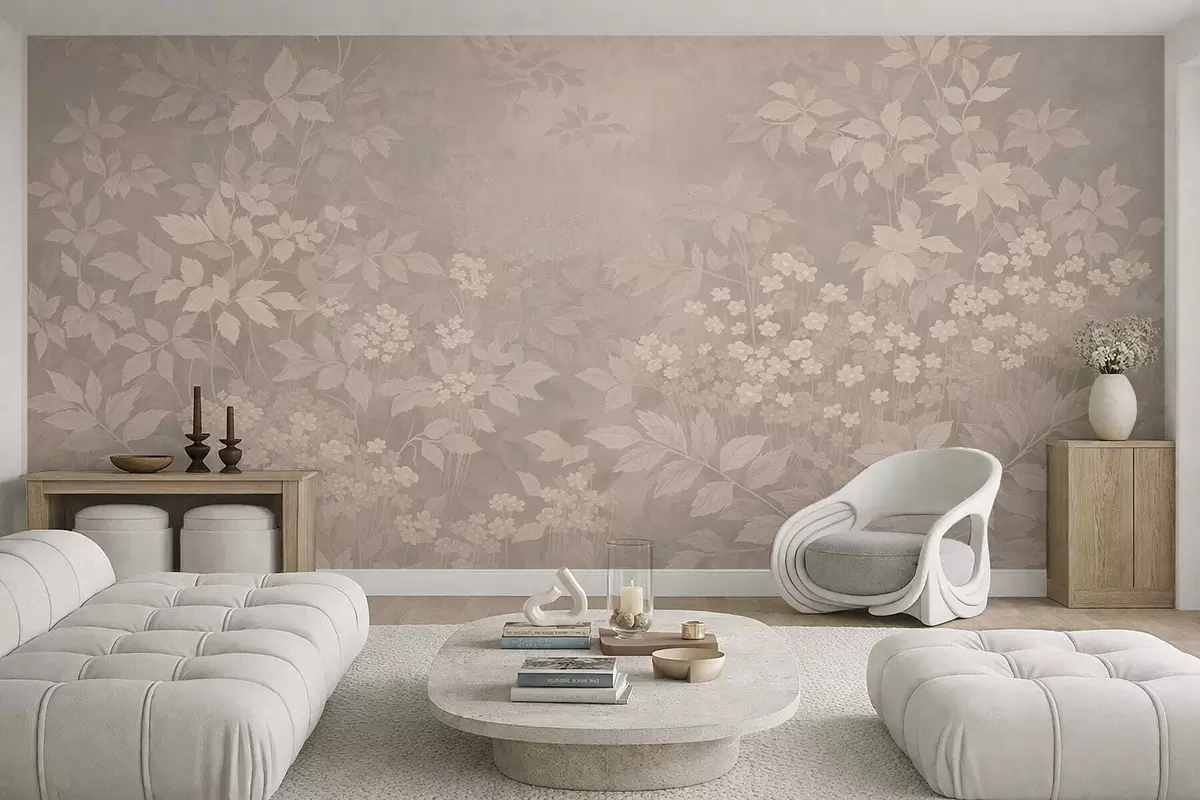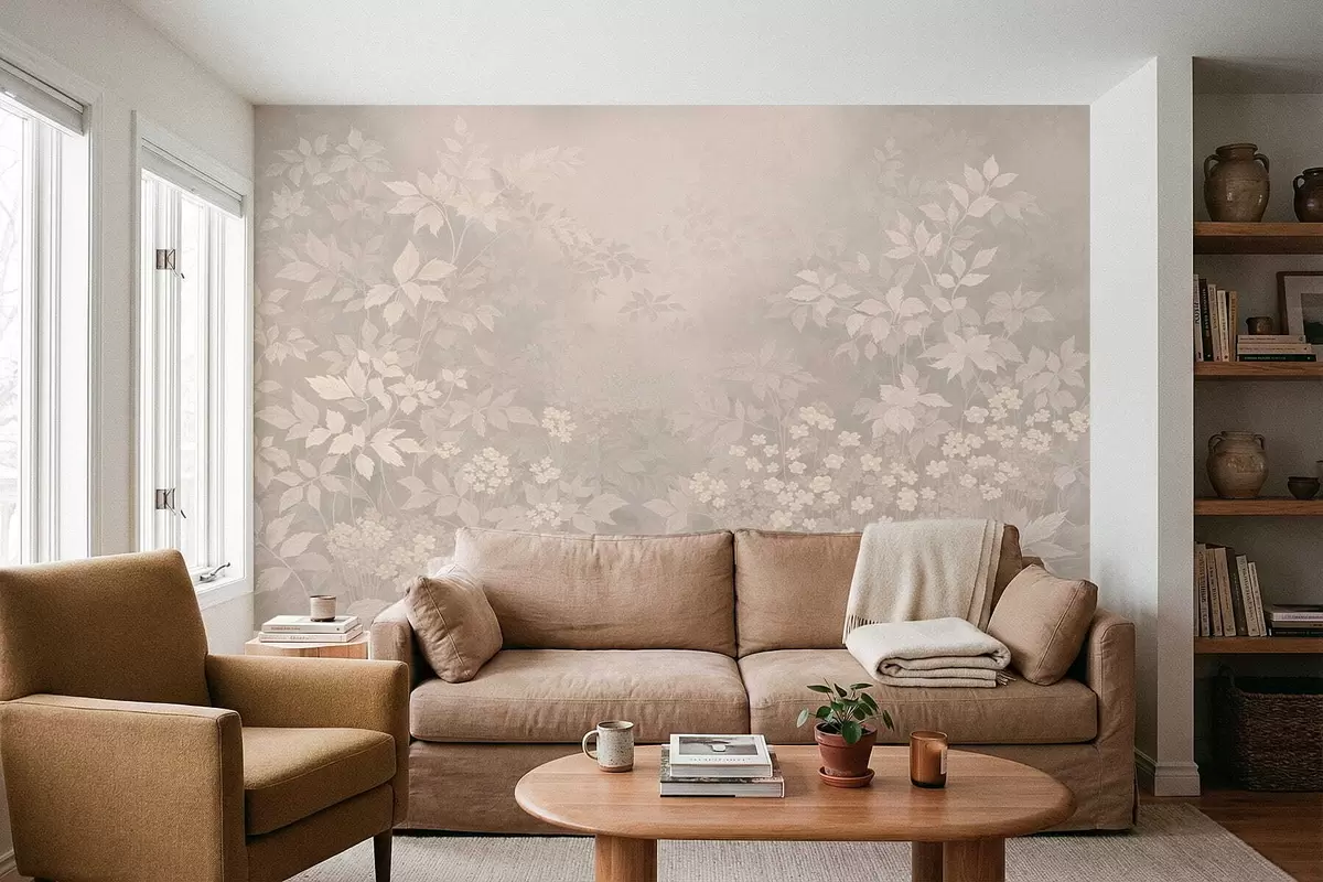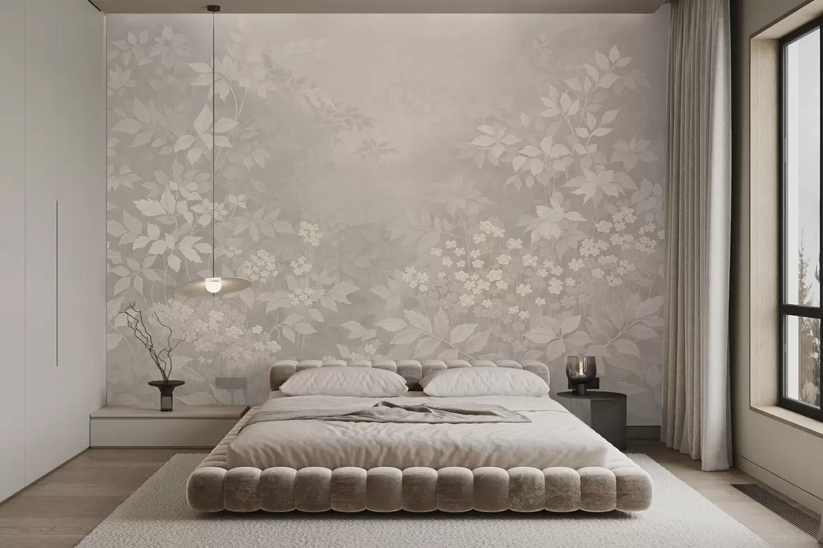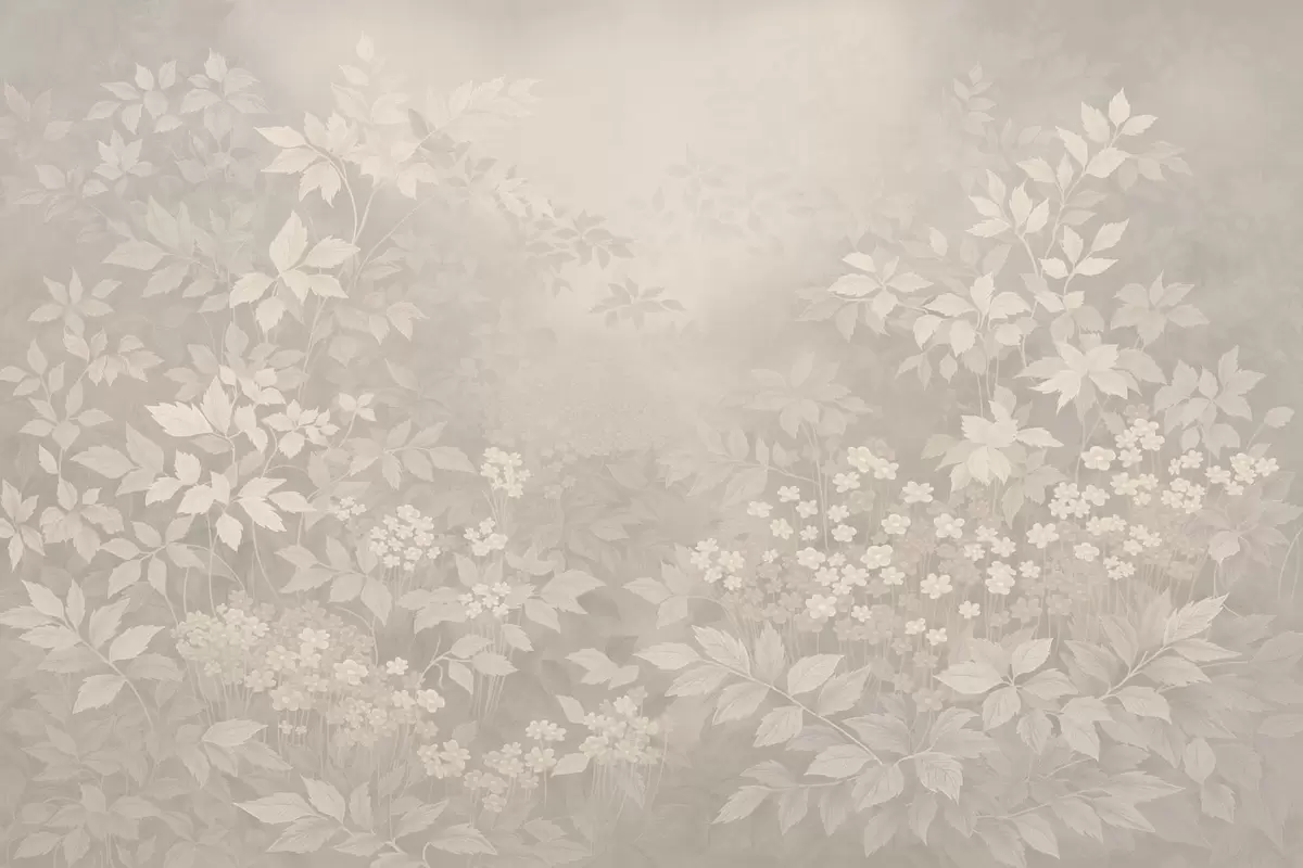 Fototapeta Delikatny botaniczny wzór z liśćmi i kwiatami w mgle Nr w05115v1
