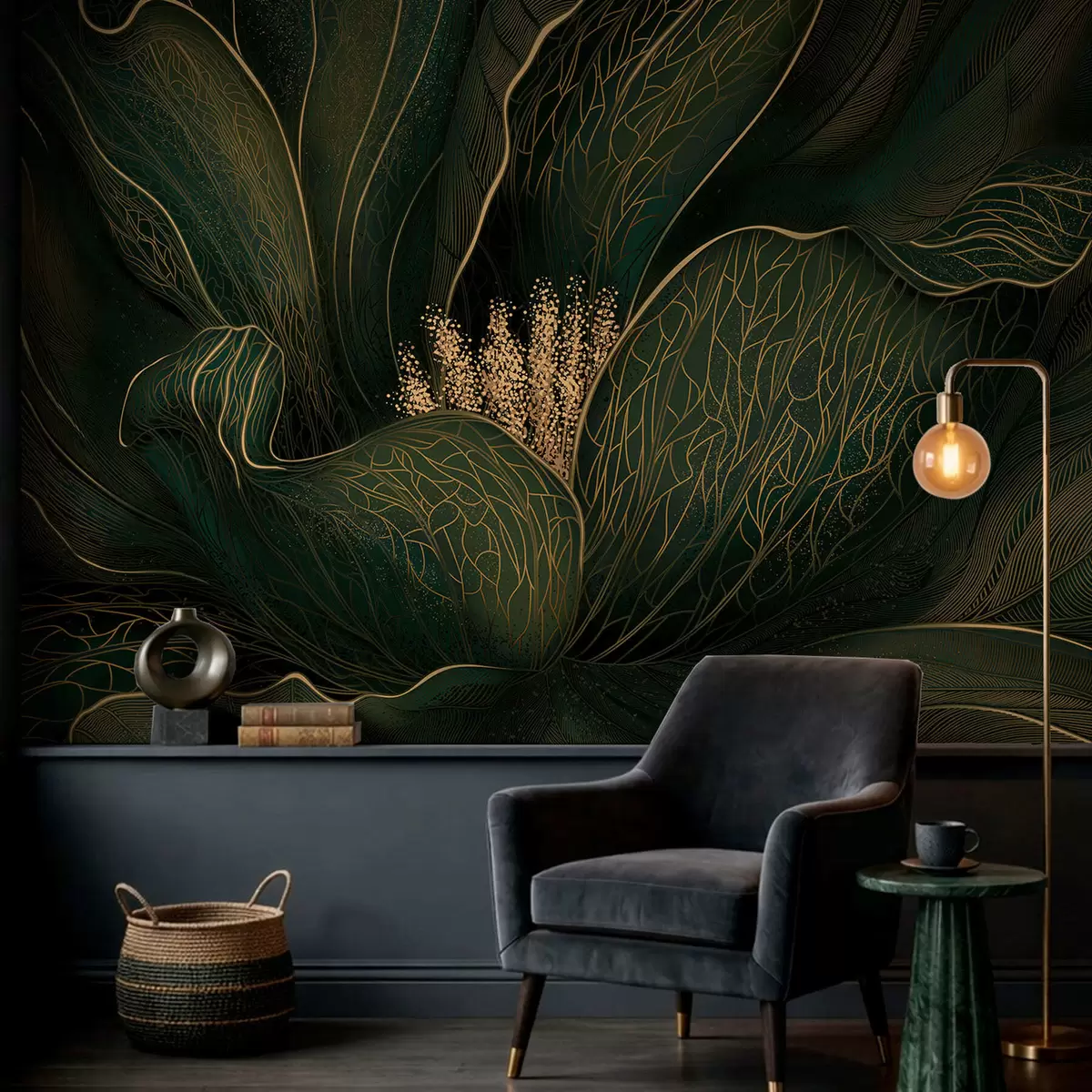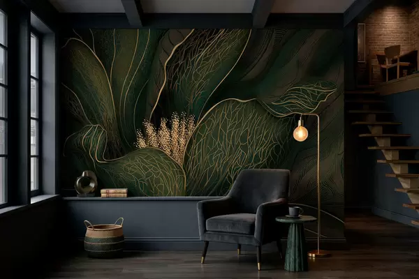 Fototapeta Ciemnozielony abstrakcyjny kwiat z delikatnymi liniowymi detalami Nr w05119v1