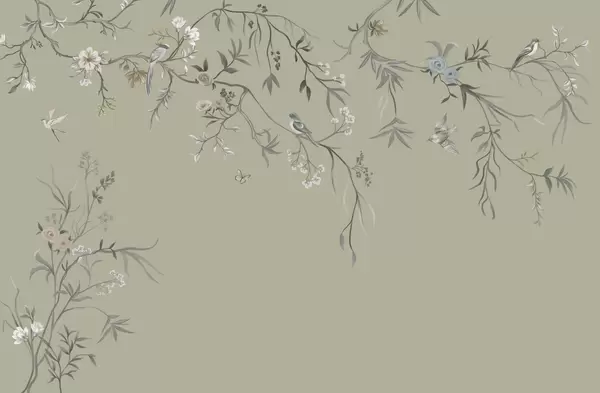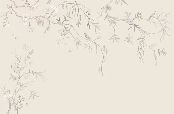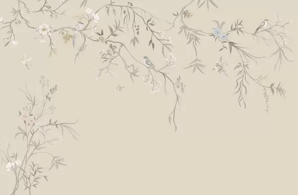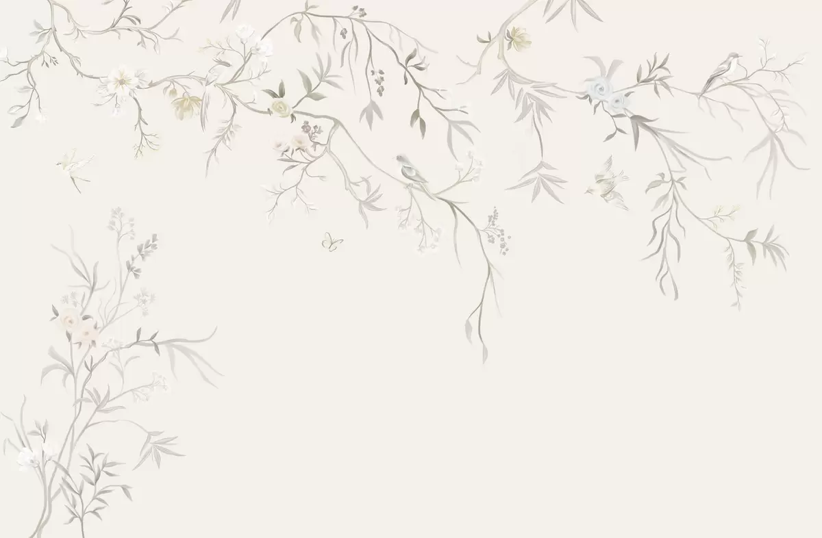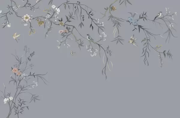 Fototapeta Delikatne kwiaty i ptaki na kredowym tle Nr w05127